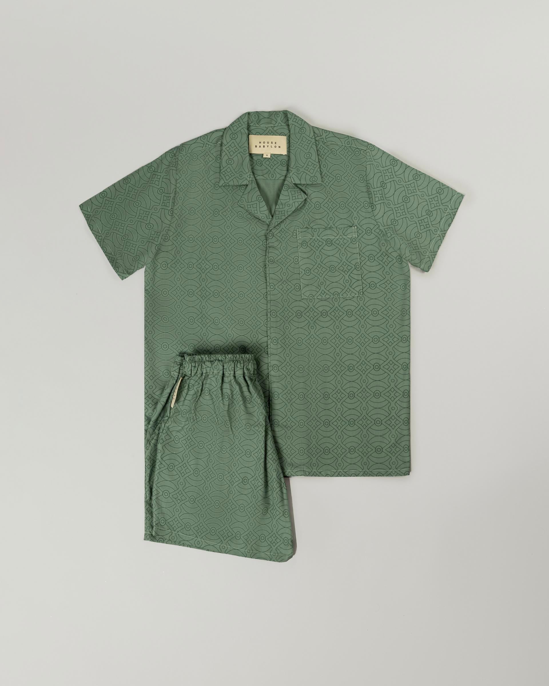 House Babylon’s tencel sets are crafted from a naturally breathable cotton tencel fabric, providing a softness akin to a silk-like feel. This airy unisex set promises to be a wardrobe staple throughout the warmer months and offers a relaxed tapered fit featuring a camp collar, two side pockets, and an elastic waistband with a drawstring. Made in Egypt.