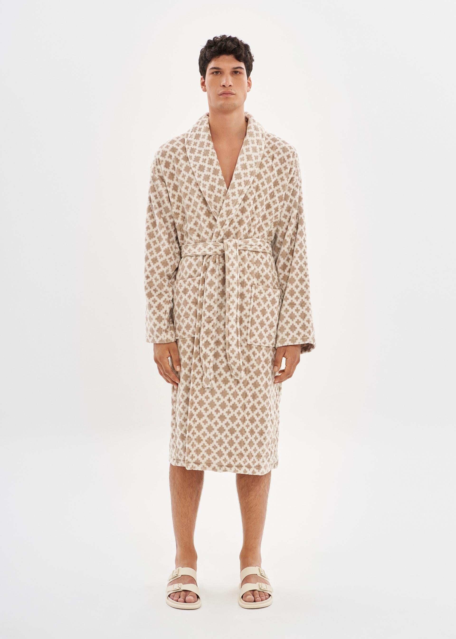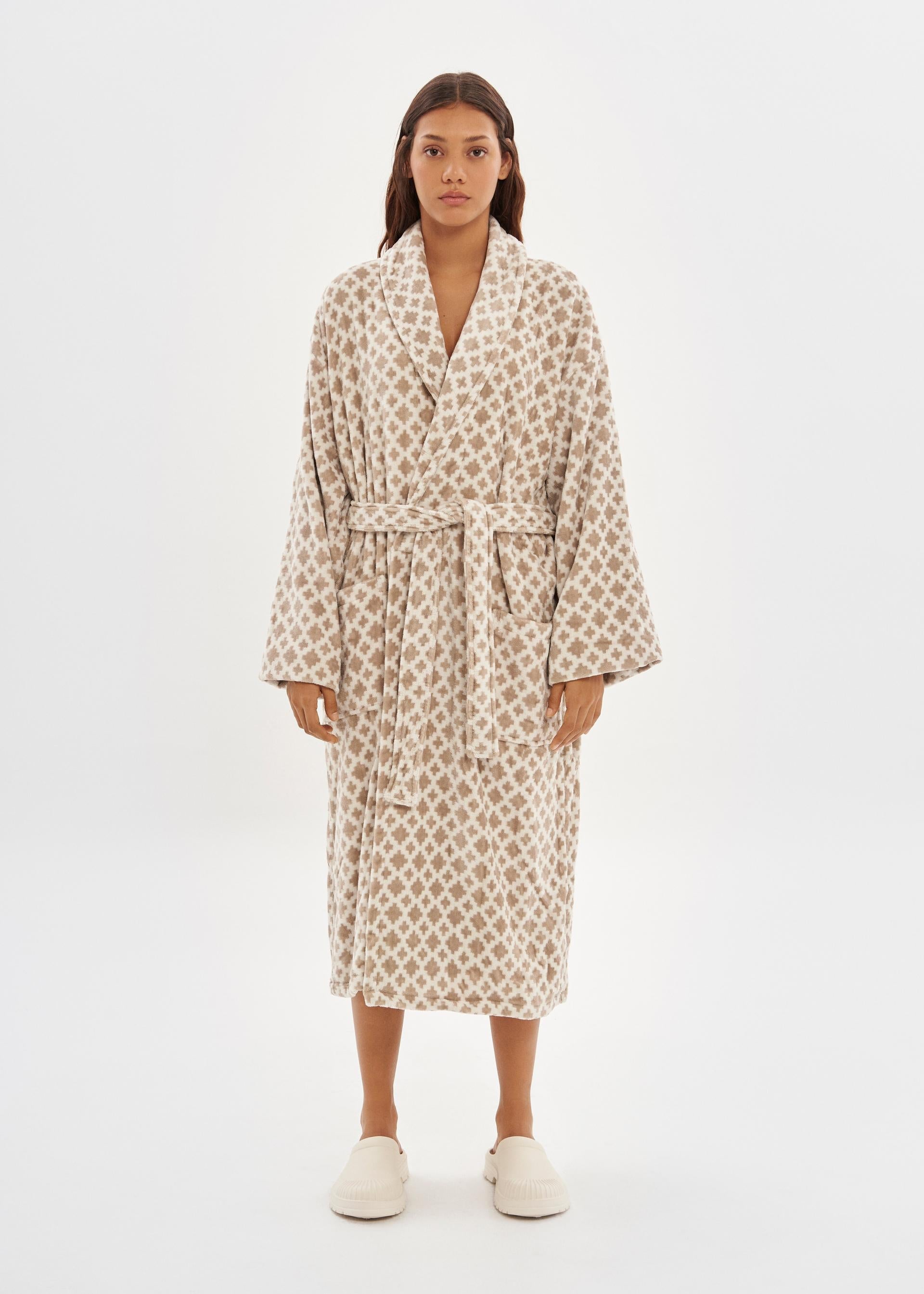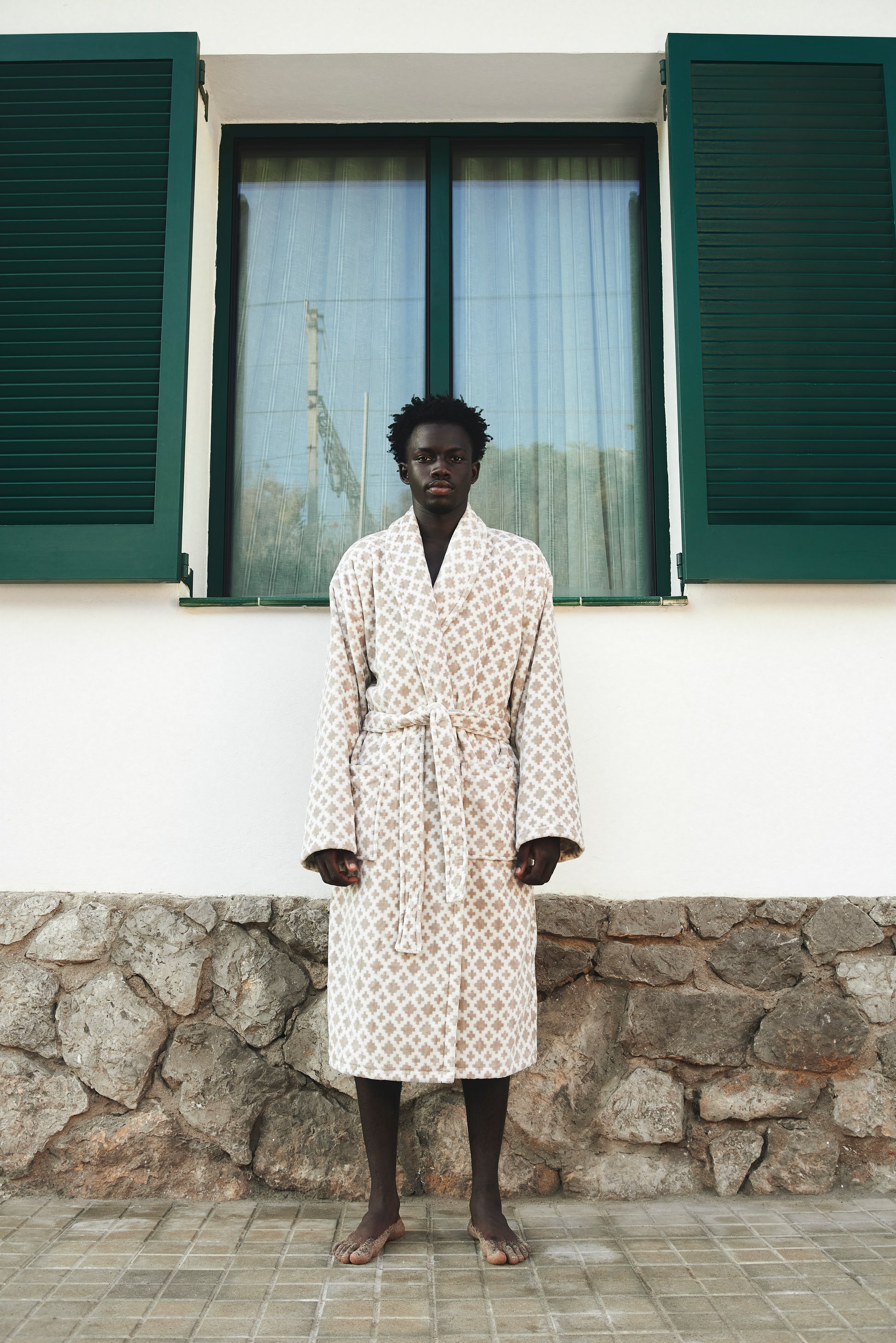 House Babylon’s bathrobe is crafted from 100% cotton to be fully free of any harmful chemicals. The terrycloth bathrobe is made of 400 GSM long cotton fibers for maximum fluffiness and absorbency. This unisex bathrobe offers a relaxed fit featuring a lapel and capacious pockets. Made in Egypt.