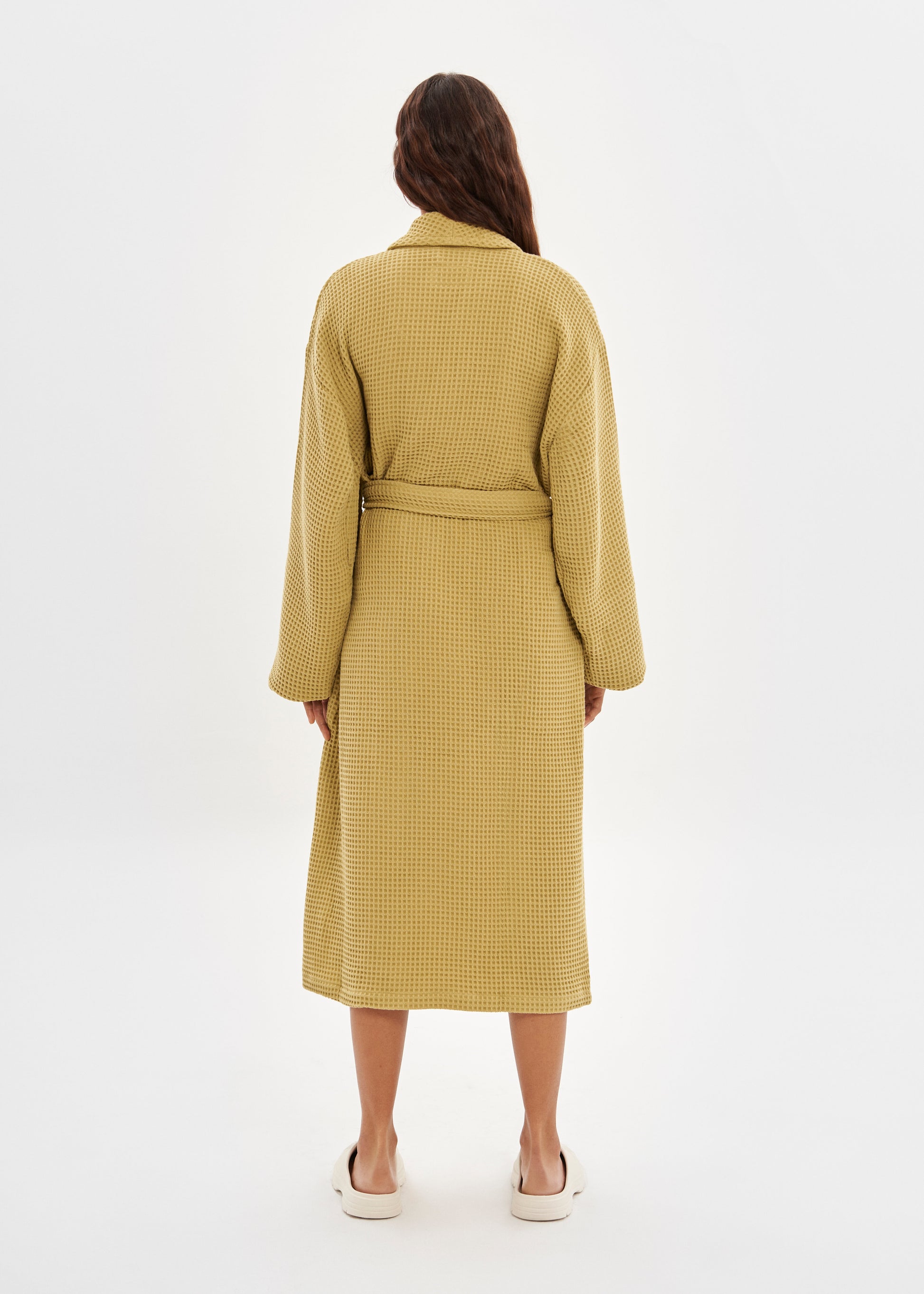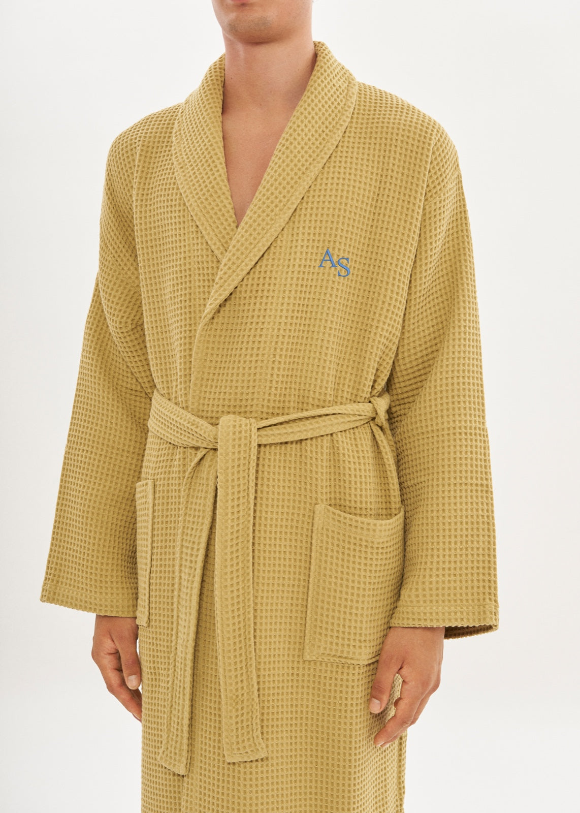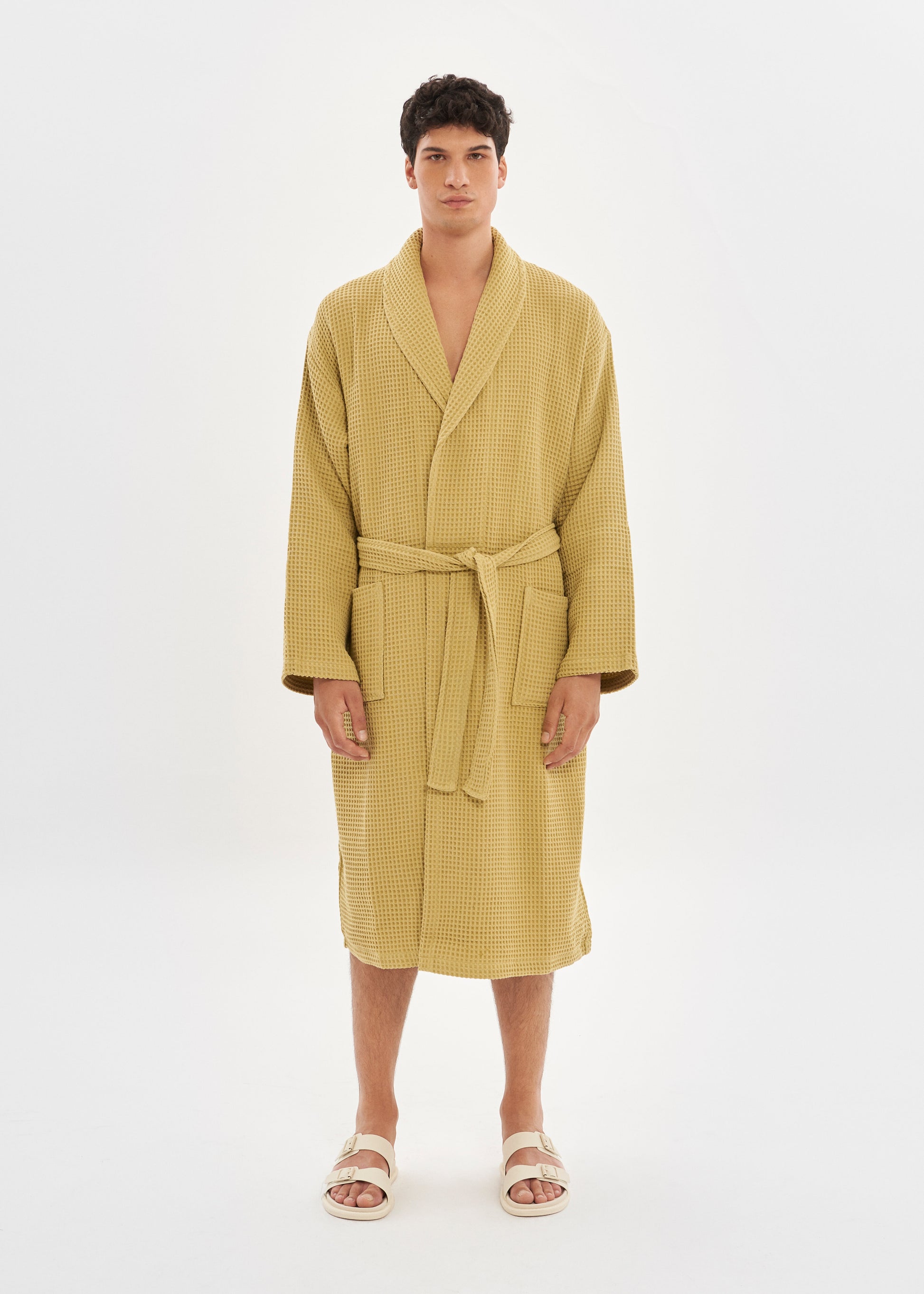 House Babylon’s waffle bathrobe is crafted from organic Turkish cotton and are Oeko-Tex certified to be fully free of any harmful chemicals. The waffle bathrobe is lightweight, softly textured and woven at 230 grams per square meter. This unisex bathrobe offers a relaxed fit featuring a lapel, a removable belt and capacious pockets. Made in Turkey.