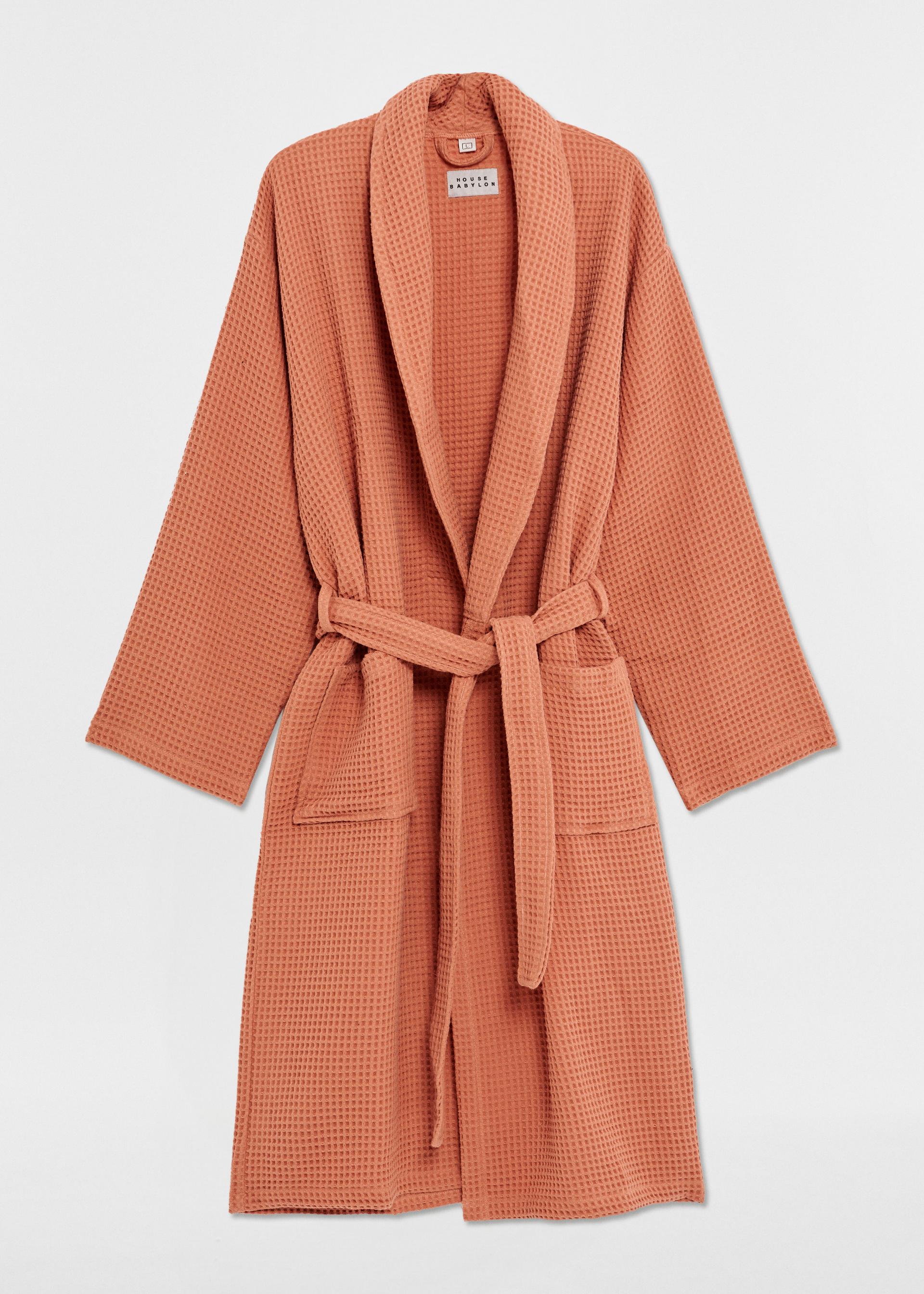 House Babylon’s waffle bathrobe is crafted from organic Turkish cotton and are Oeko-Tex certified to be fully free of any harmful chemicals. The waffle bathrobe is lightweight, softly textured and woven at 230 grams per square meter. This unisex bathrobe offers a relaxed fit featuring a lapel, a removable belt and capacious pockets. Made in Turkey.