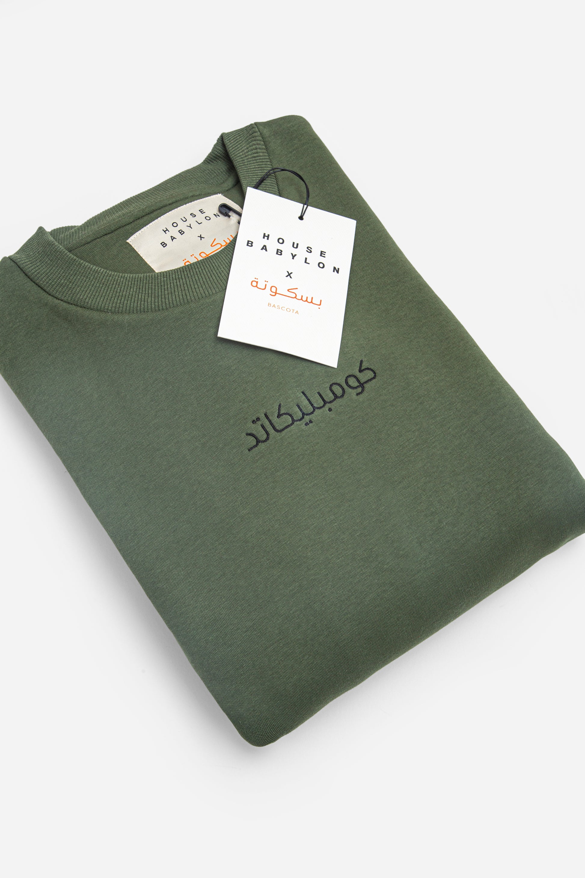The oversized unisex sweatshirt is made from 330g heavyweight cotton, combining durability with comfort. Featuring a classic crewneck and dropped shoulders, it’s designed for a relaxed, casual fit. The chest has the word "Complicated" in Arabic, embroidered in a simple, minimal font.