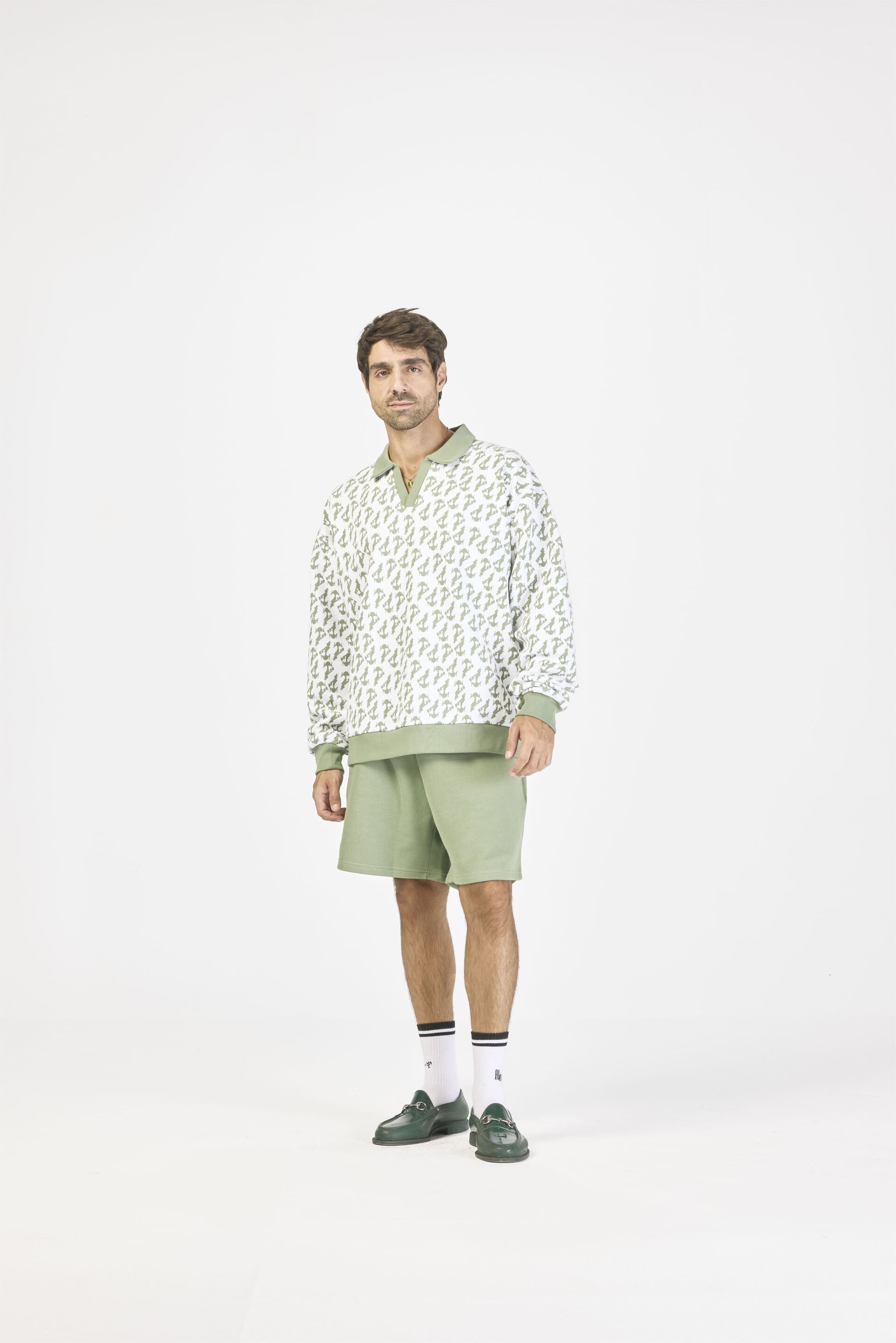 The 100% printed cotton long-sleeve polo is crafted from heavy piqué brushed fabric. It features a contrasted polo collar,ribbed cuffs and waist hem. Designed with a relaxed fit for ultimate comfort, it pairs perfectly with the piqué shorts to complete the look.