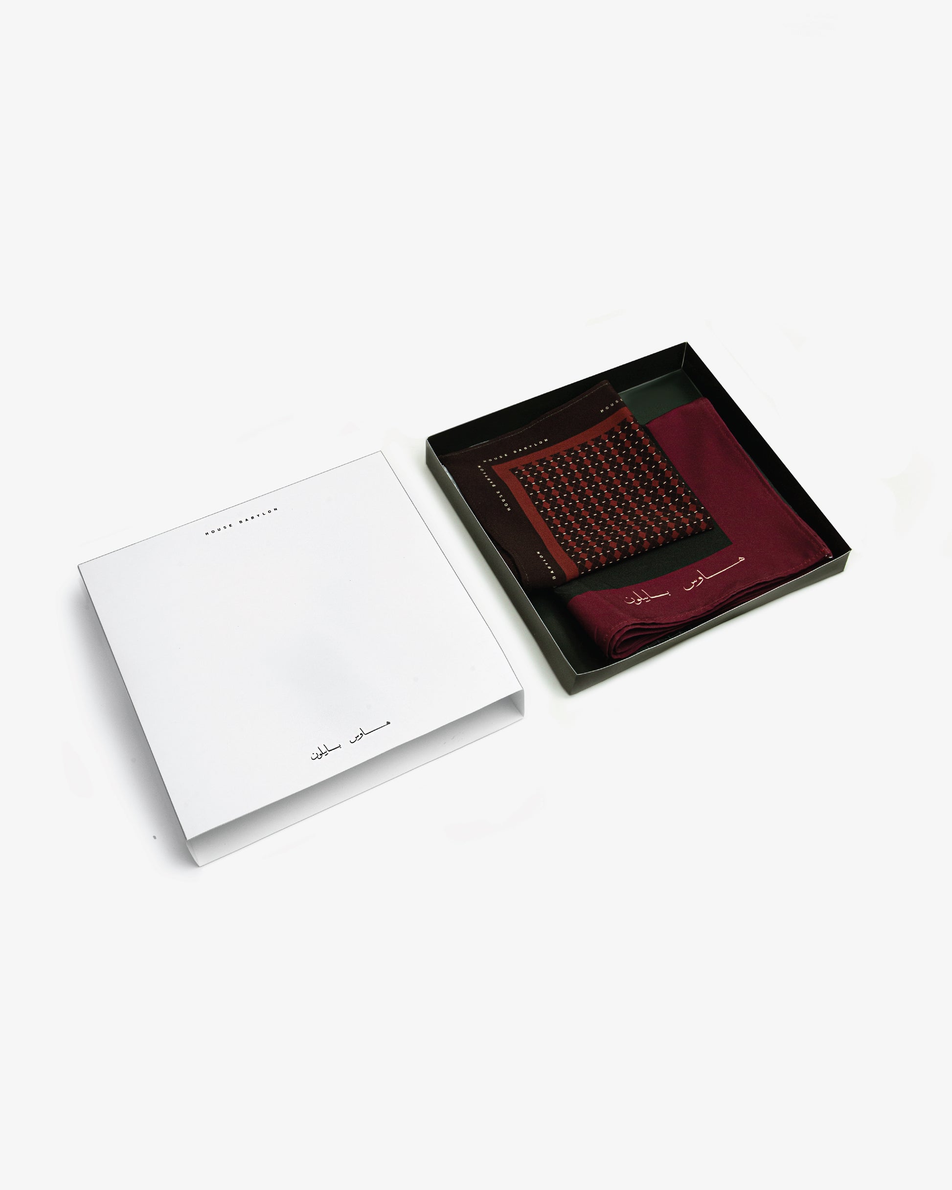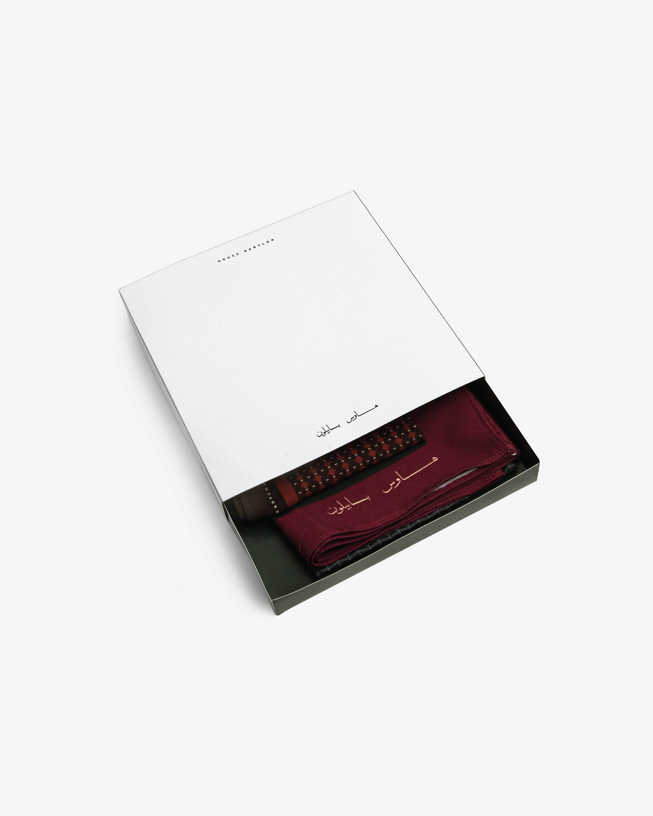 A refined Valentine’s gift, thoughtfully curated and presented in a premium House Babylon gift box, ready to be gifted. This bundle brings together a women’s square scarf with a multicoloured geometrical print and a men’s handkerchief designed with a clean, minimal finish for everyday use.