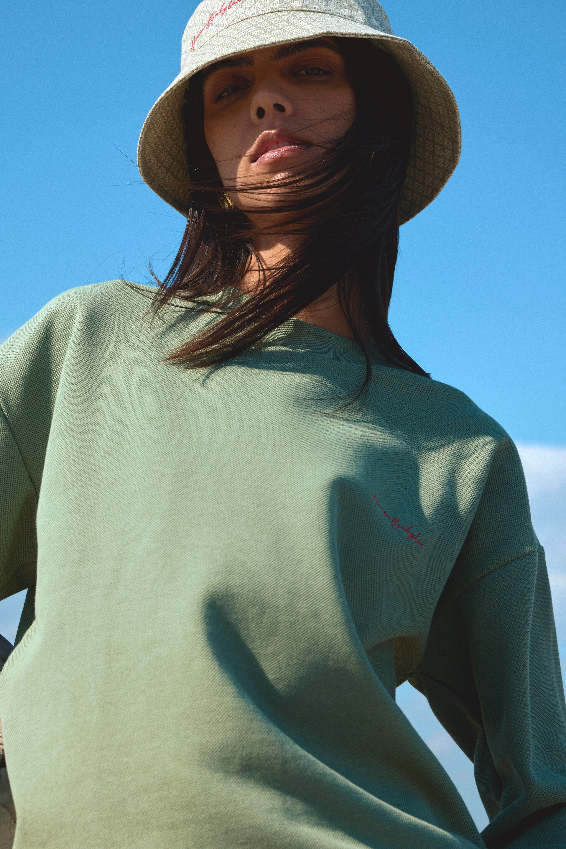 The 100% cotton long-sleeve sweatshirt is crafted from heavy piqué brushed fabric. It features a crew neckline, an embroidered chest logo, and ribbed cuffs and waist hem. Designed with a relaxed fit for ultimate comfort, it pairs perfectly with the piqué trousers to complete the look.