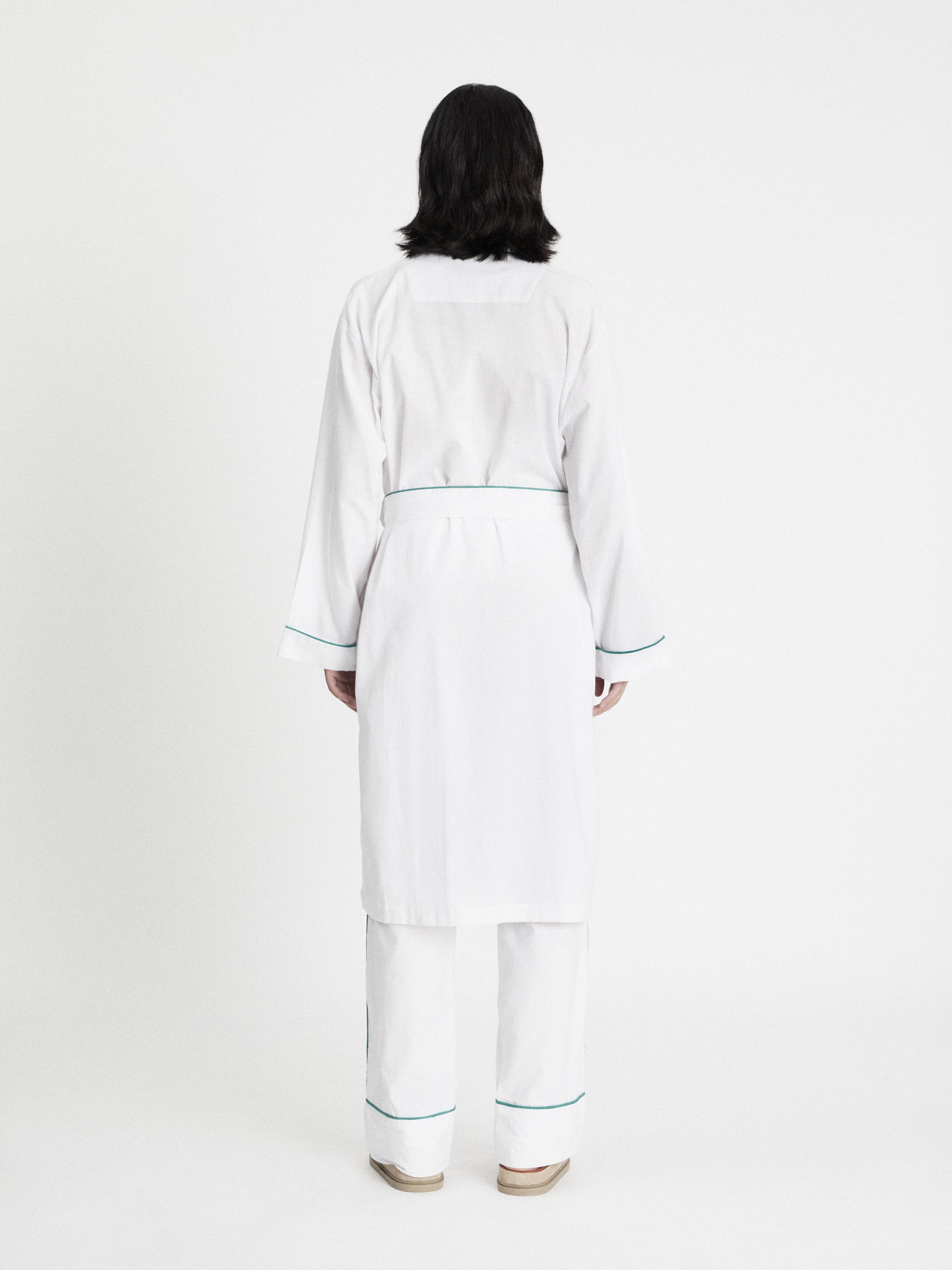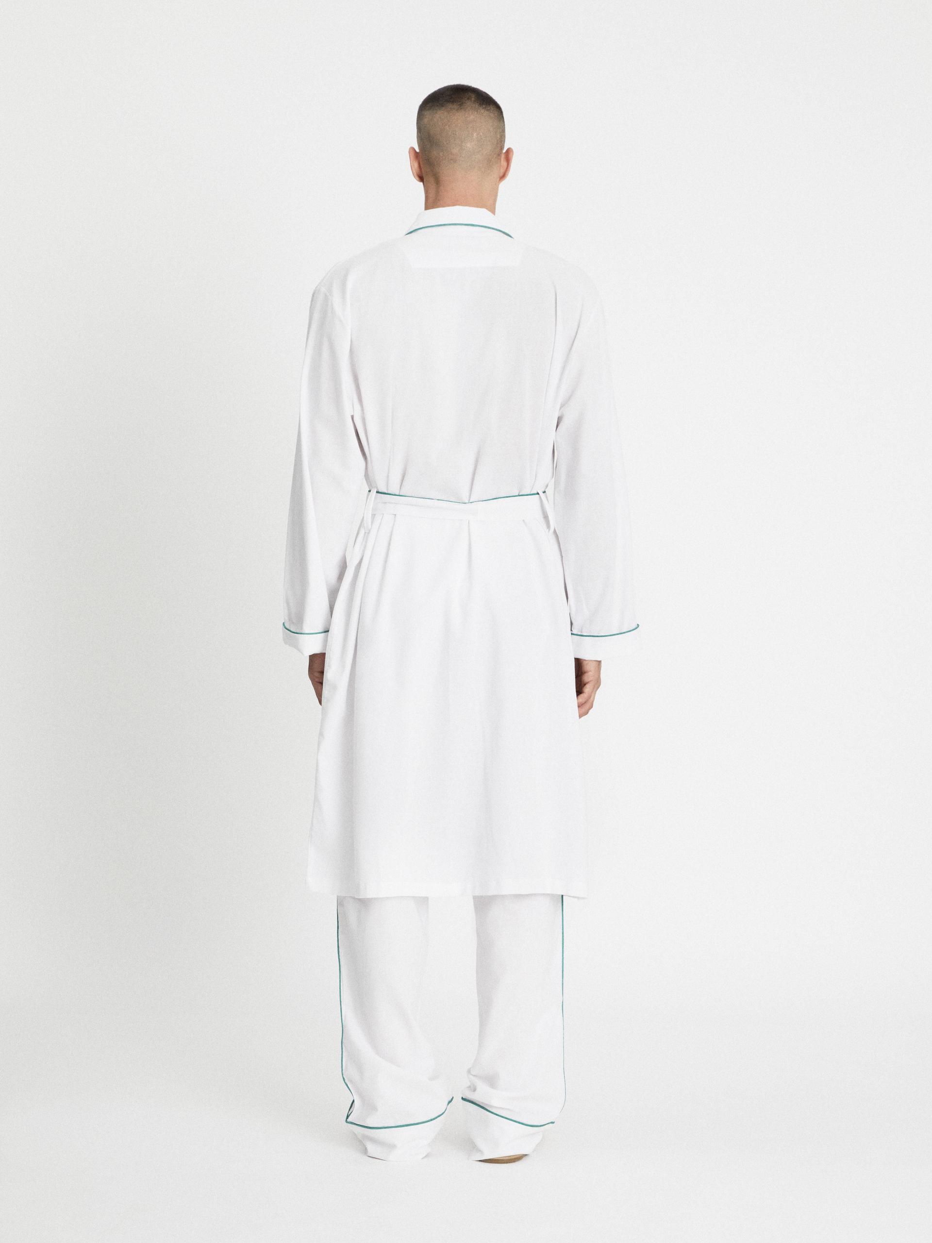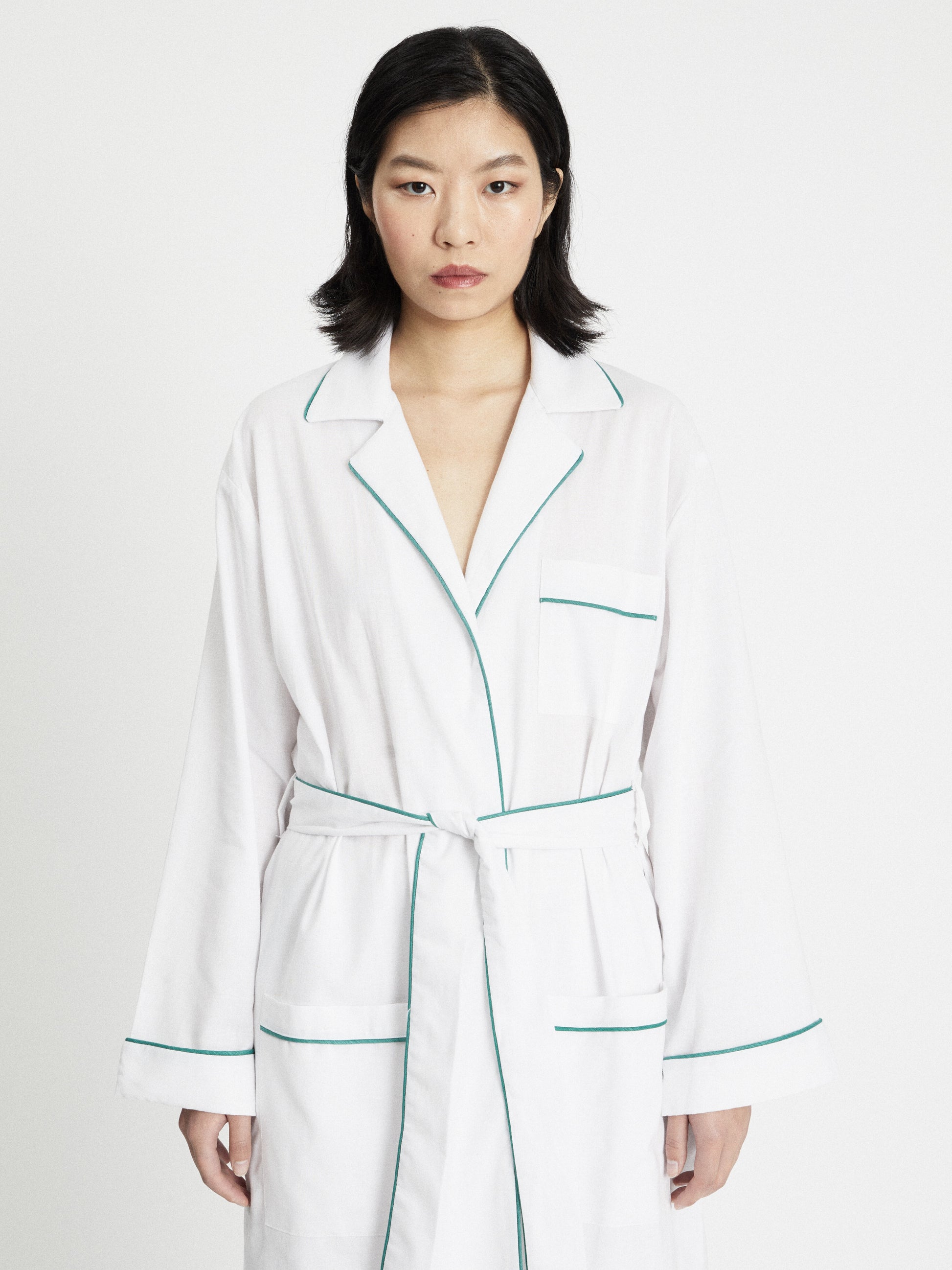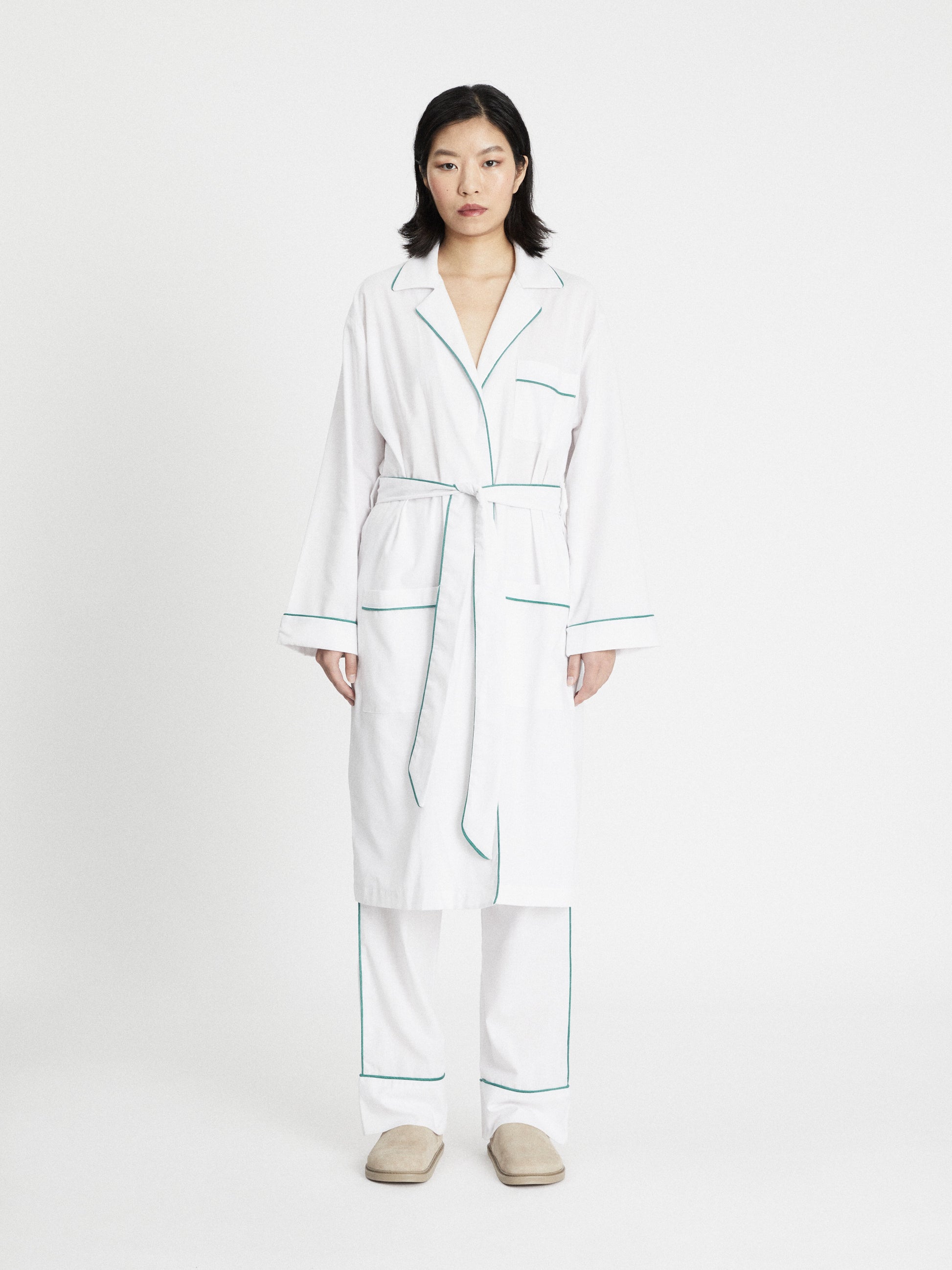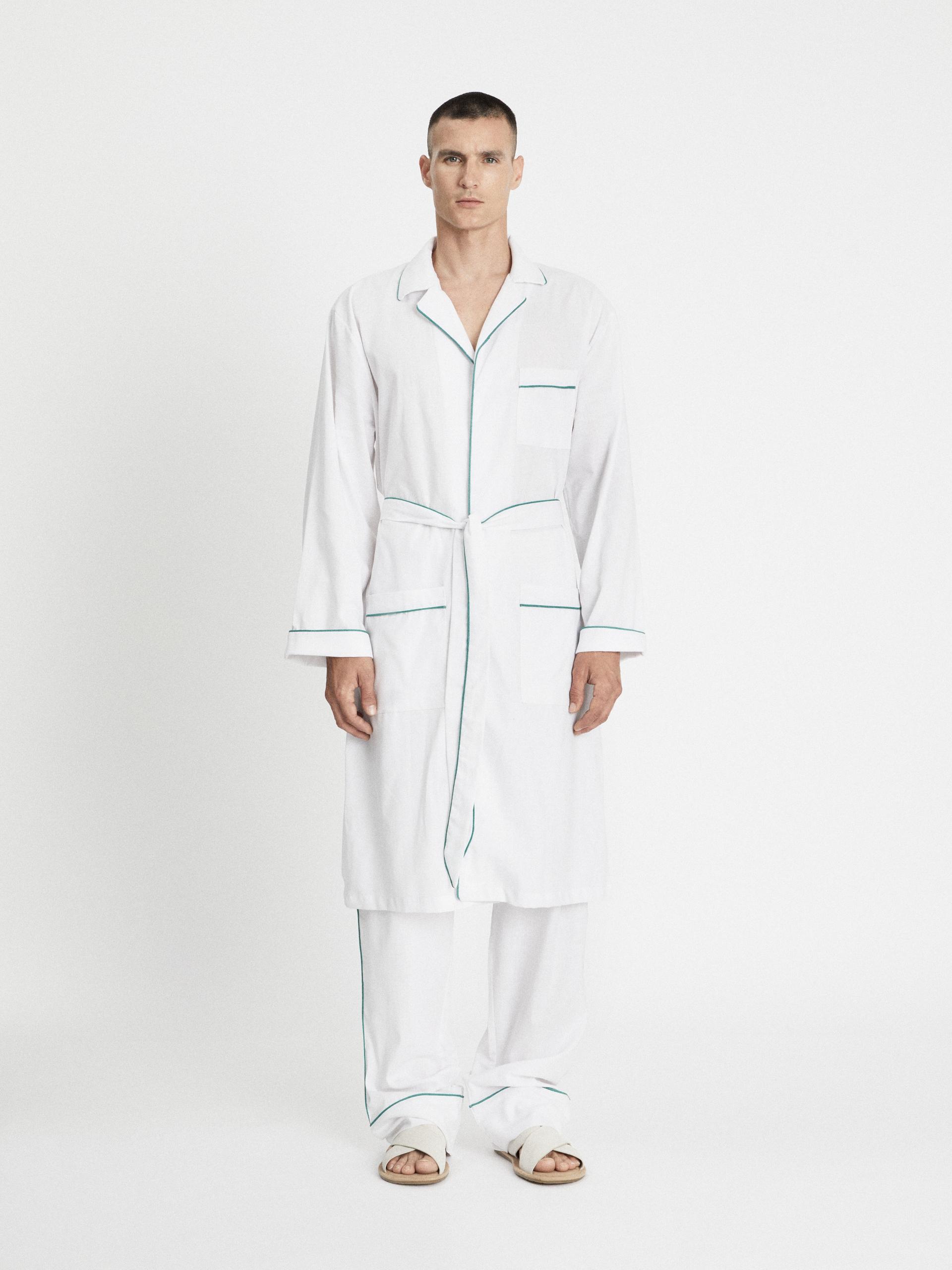 House Babylon’s Oxford robes are crafted from a naturally breathable cotton fabric. This unisex robe is designed in crisp oxford with contrasting piping and offers a relaxed fit featuring practical patch pockets, a chest pocket, and a detachable self-fabric belt. Made in Egypt.