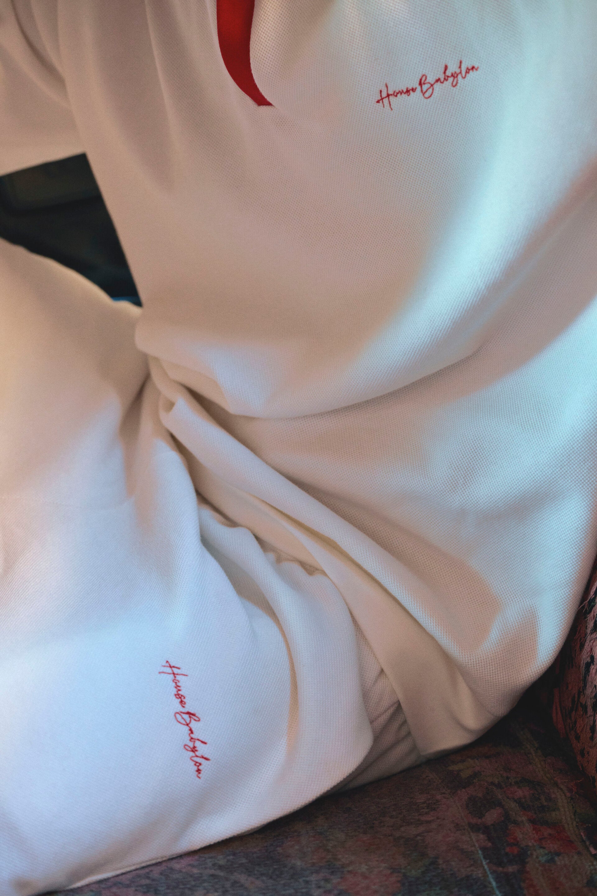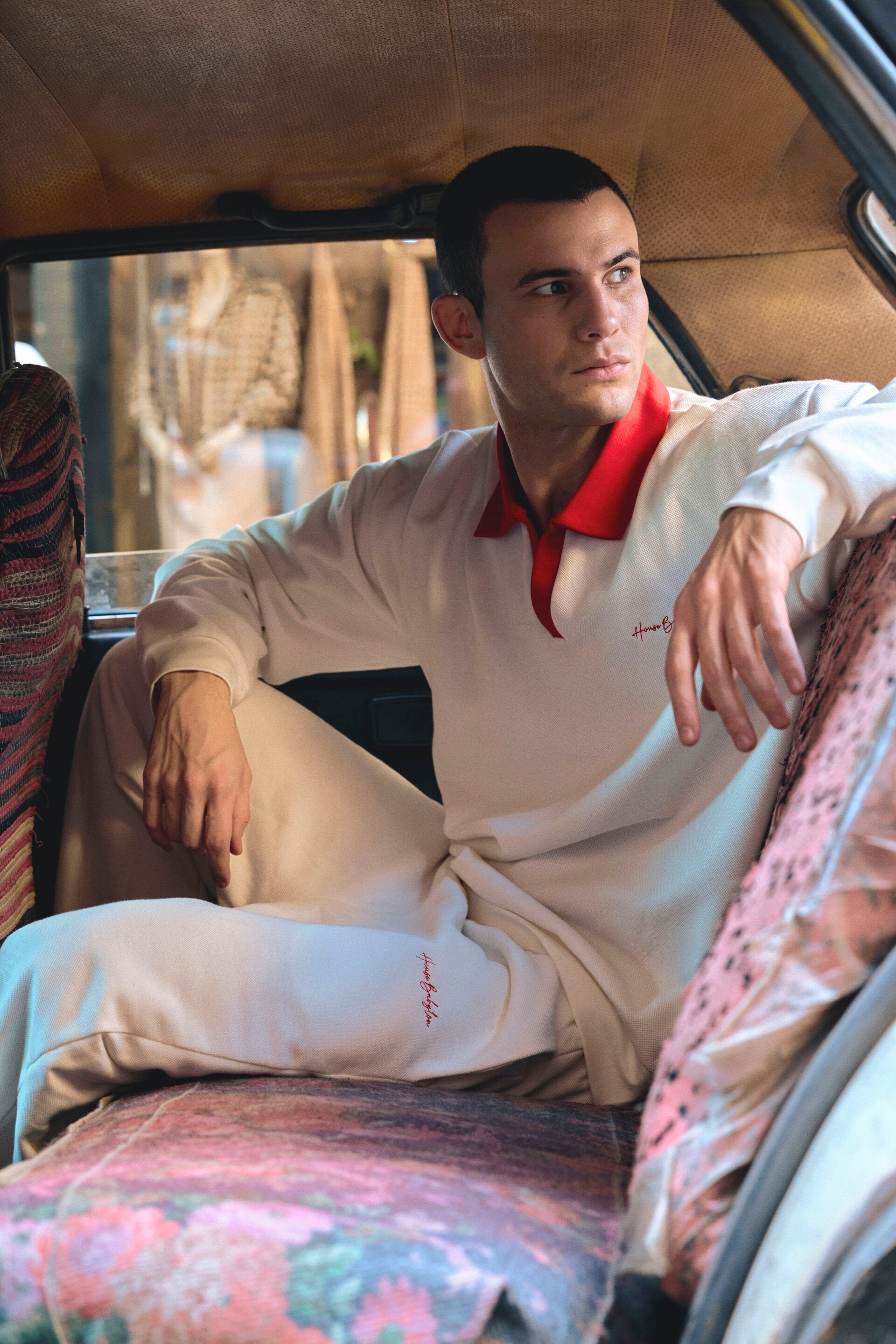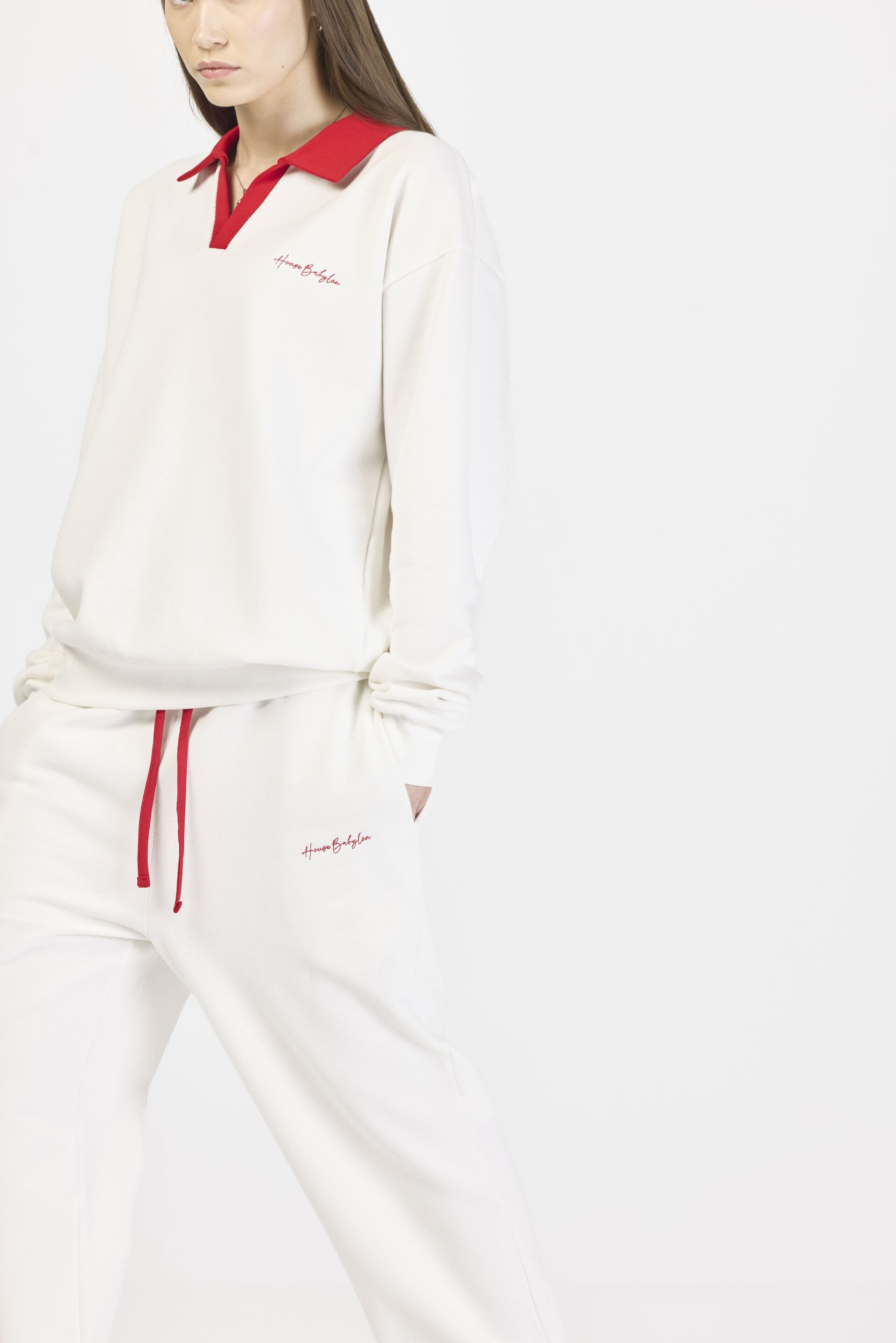 This long-sleeve polo is crafted from soft velour-knit fabric, and features a contrasting polo collar, embroidered chest logo, and ribbed cuffs and hemline. Designed with a relaxed fit for all-day comfort, it pairs seamlessly with the matching piqué trousers to complete the look.