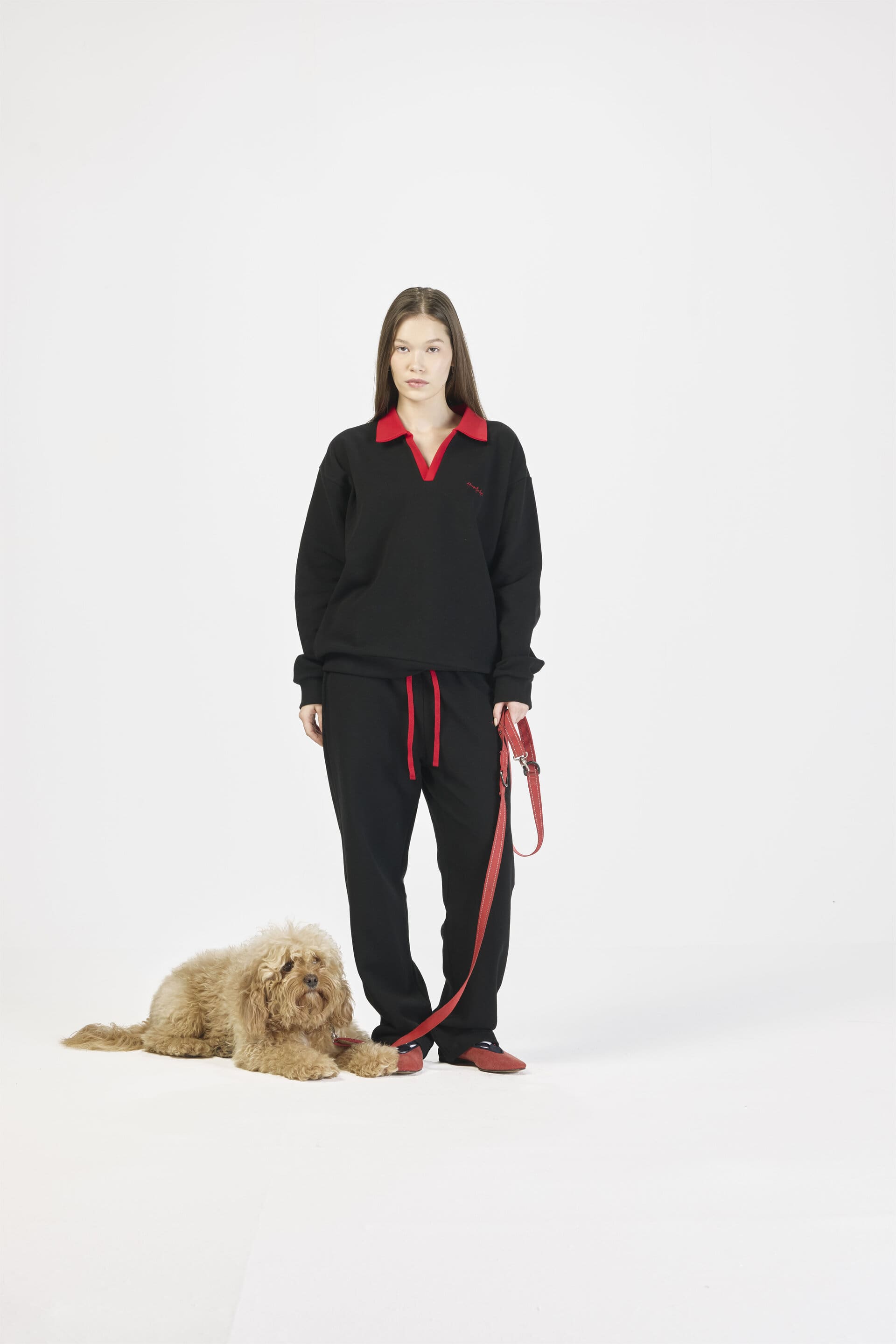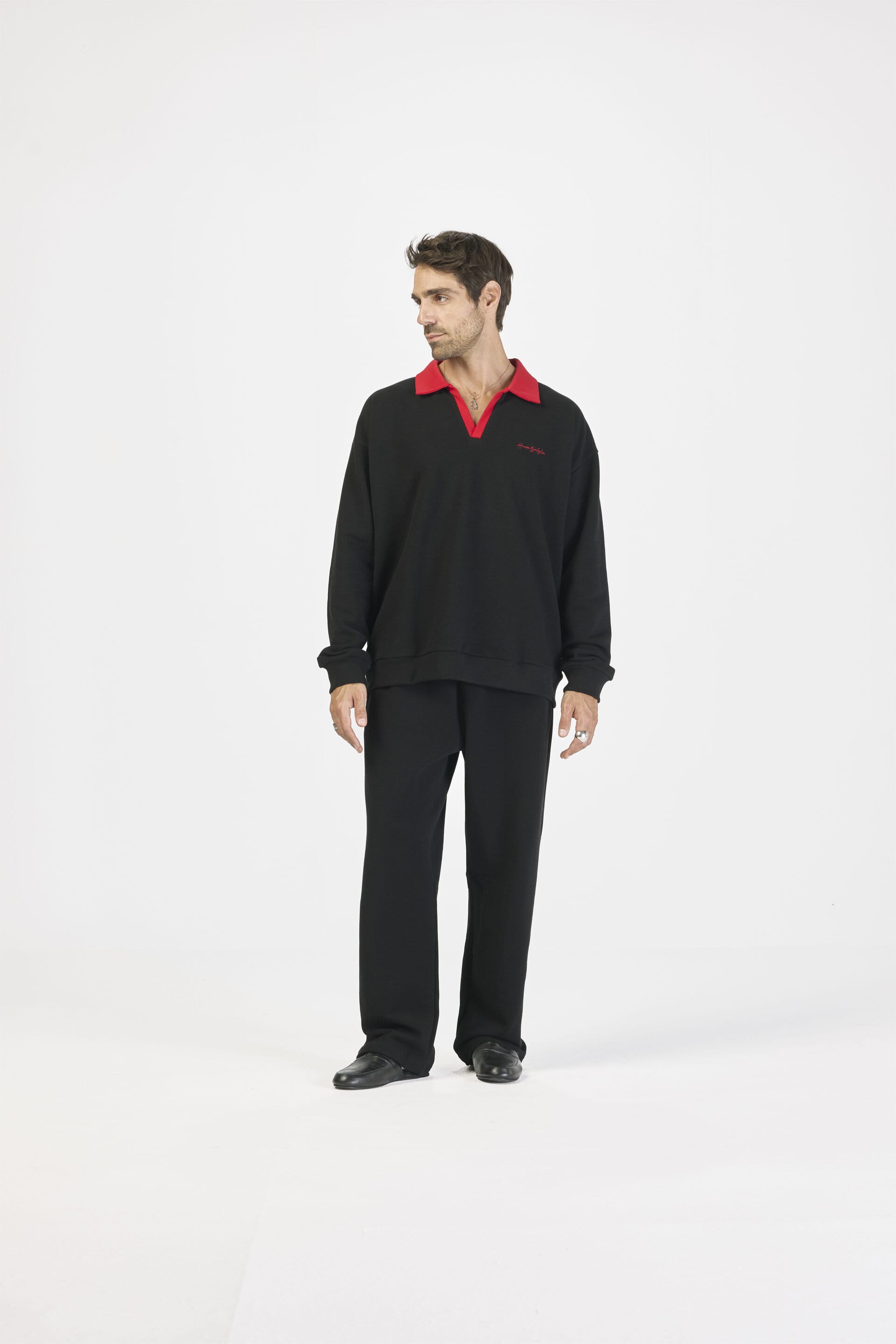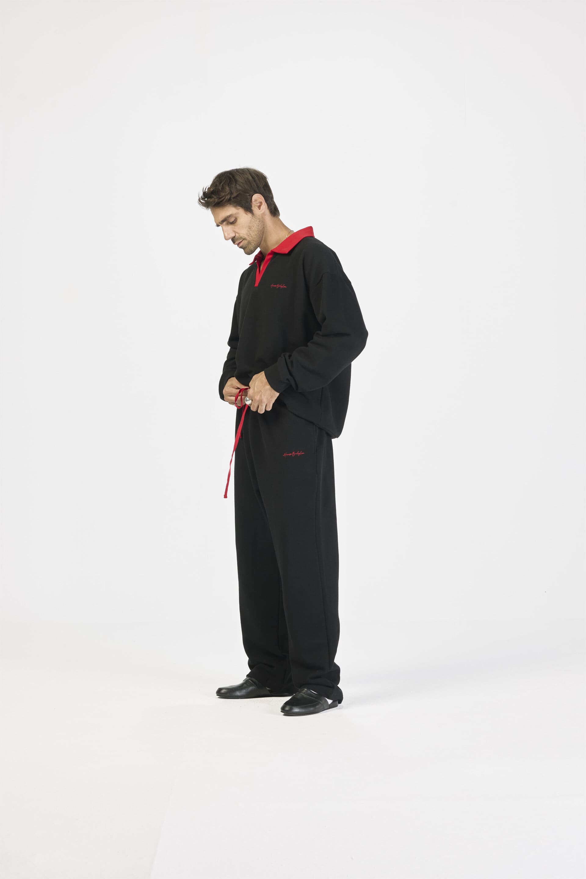 This long-sleeve polo is crafted from soft velour-knit fabric, and features a contrasting polo collar, embroidered chest logo, and ribbed cuffs and hemline. Designed with a relaxed fit for all-day comfort, it pairs seamlessly with the matching piqué trousers to complete the look.