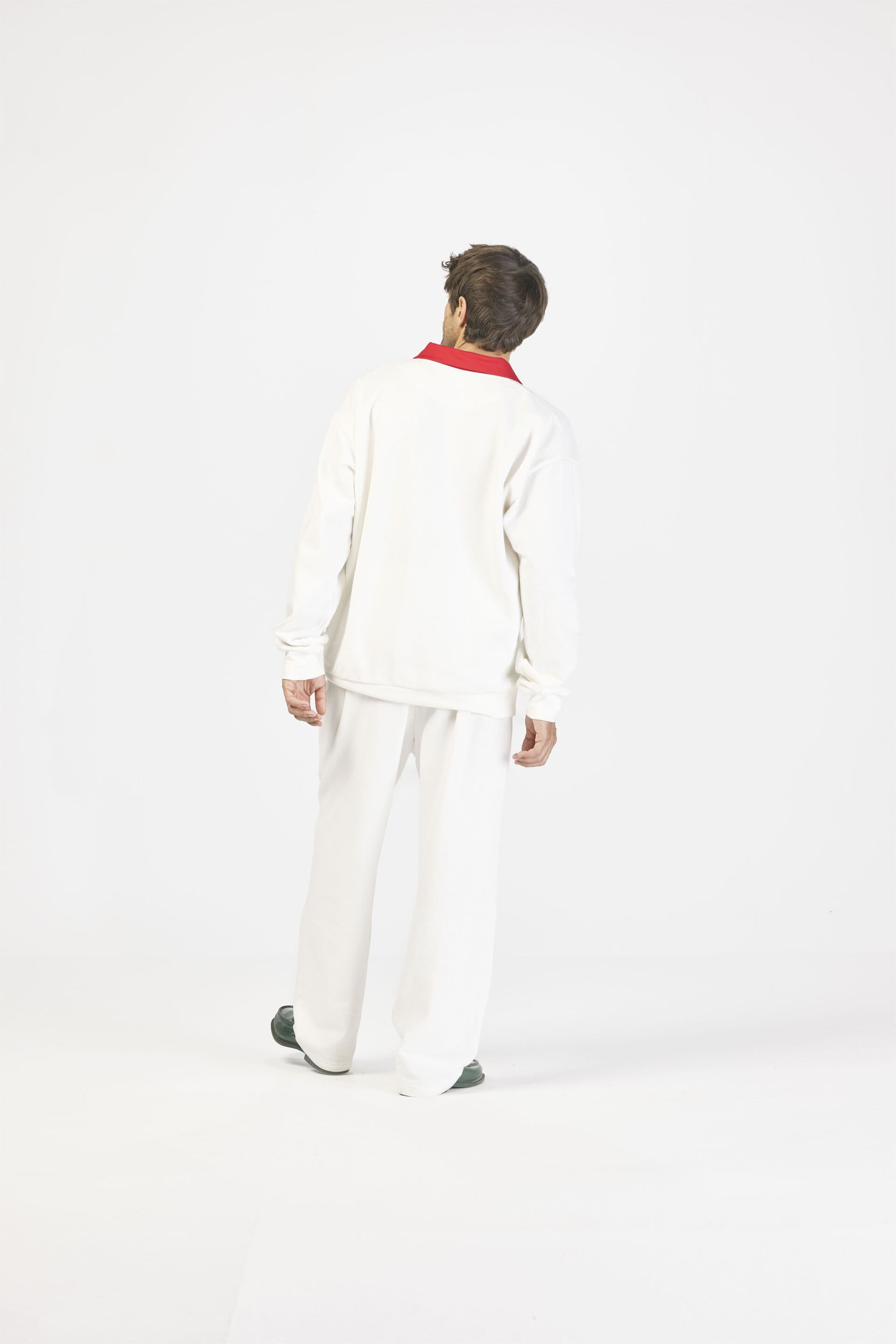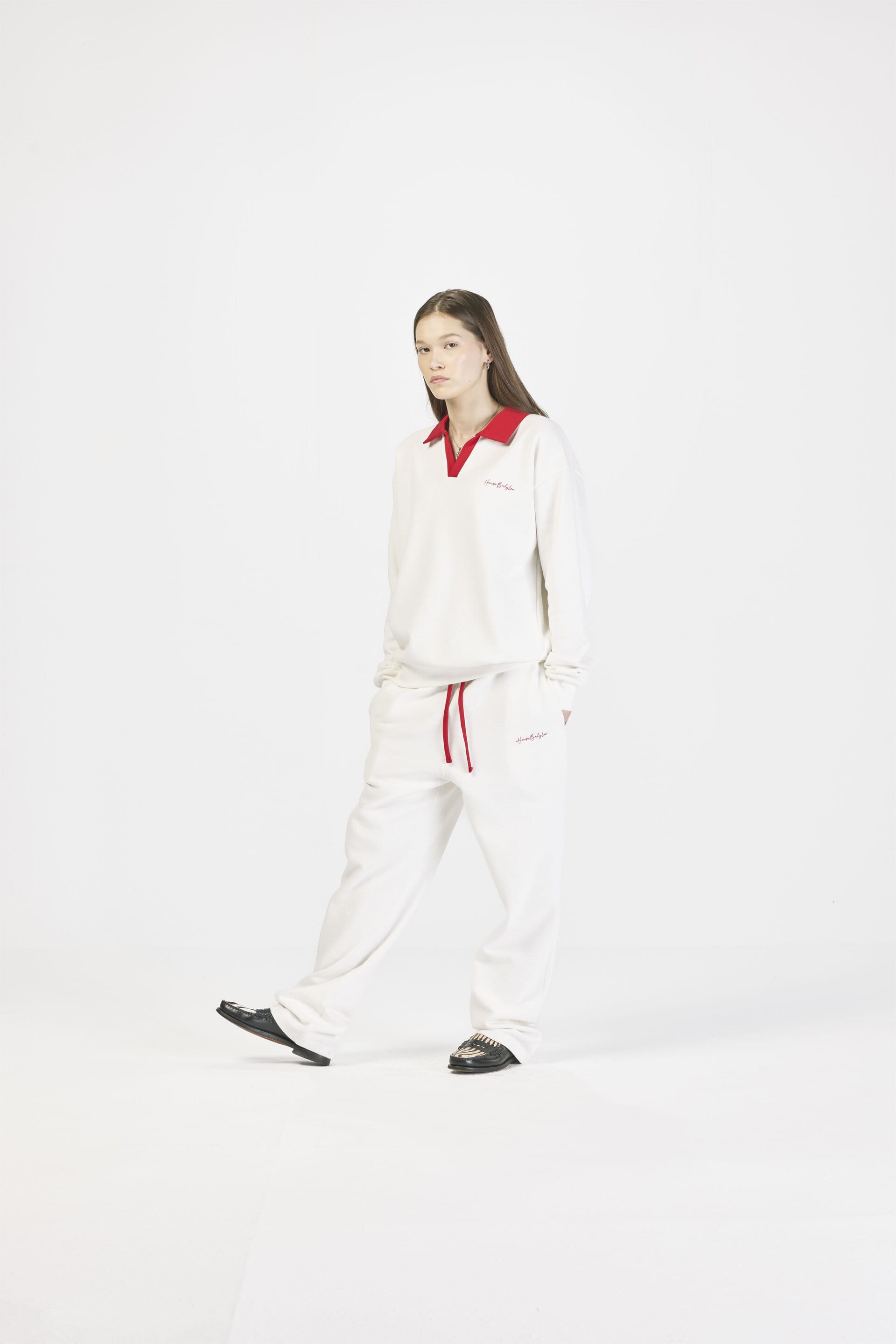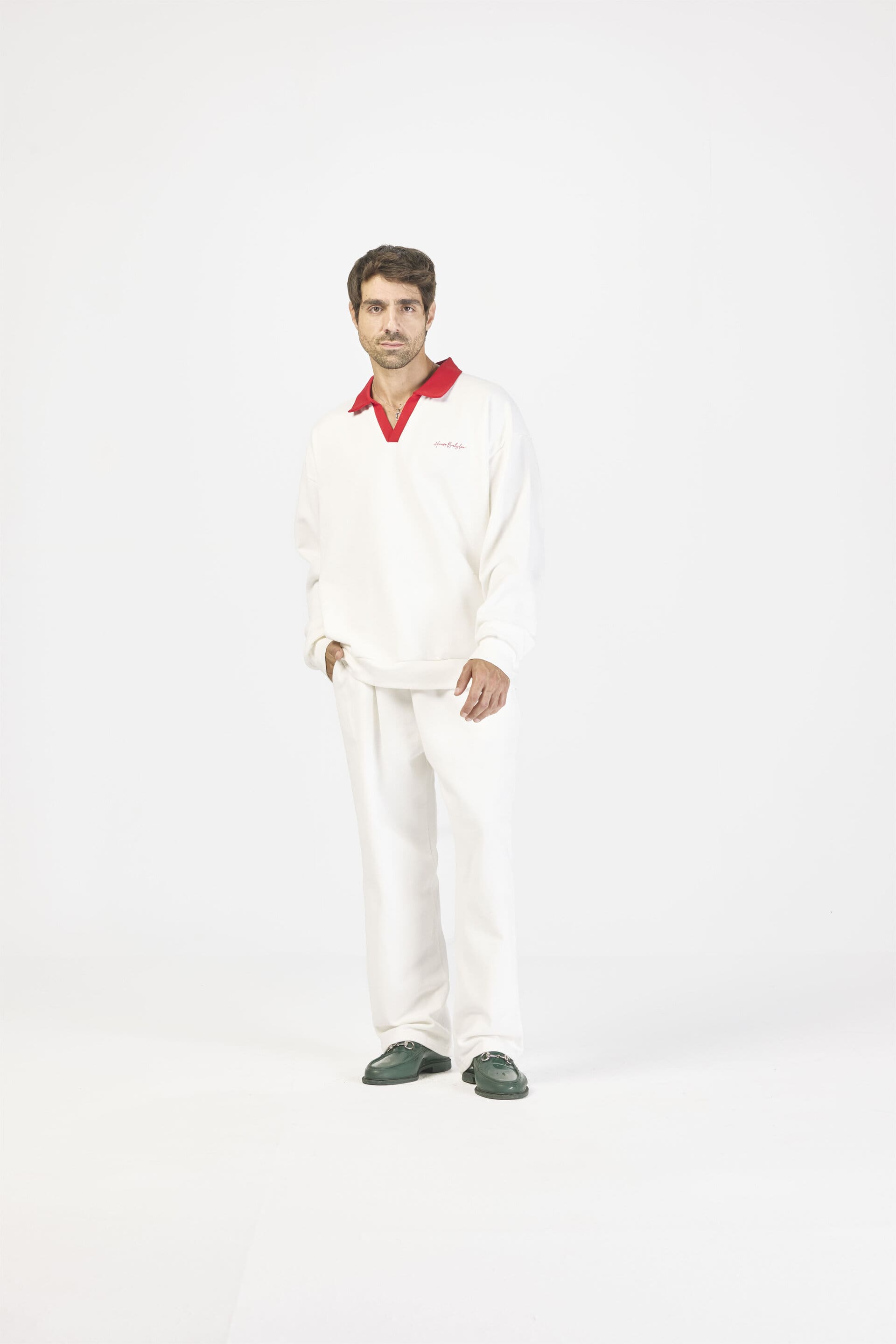 This long-sleeve polo is crafted from soft velour-knit fabric, and features a contrasting polo collar, embroidered chest logo, and ribbed cuffs and hemline. Designed with a relaxed fit for all-day comfort, it pairs seamlessly with the matching piqué trousers to complete the look.