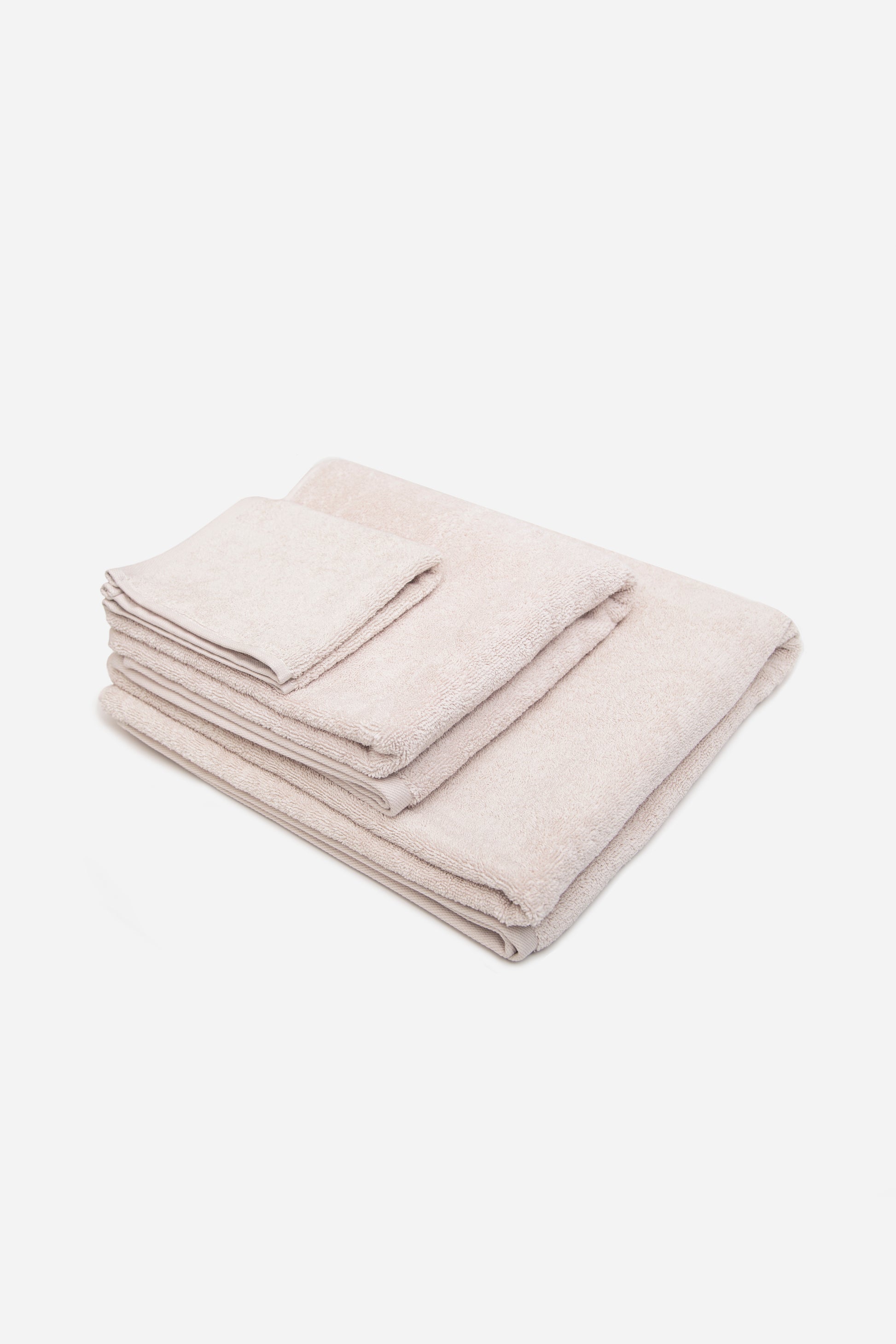 The towel collection is designed to perfectly balance absorbency and softness. Made from extra-long cotton yarns and 700 GSM for long-lasting durability that is extra-combed for a soft finish. The set consists of a face towel, a hand towel and a body towel.