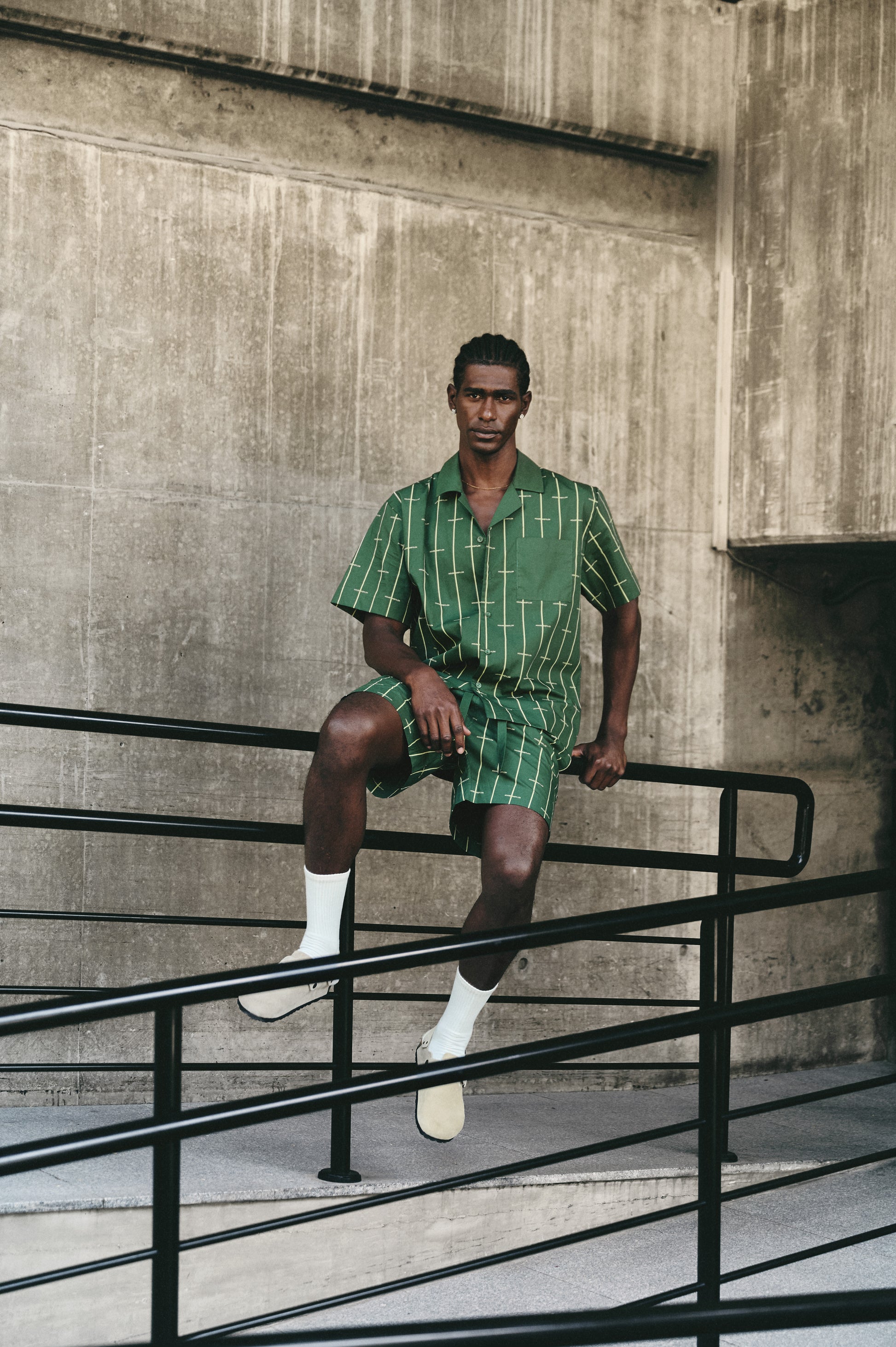 A summer uniform reimagined in breathable Egyptian cotton poplin. This set includes a short-sleeved shirt and tailored shorts, both cut for a relaxed fit that moves easily with you. The shirt features a soft spread collar, button closure, and a single chest pocket for subtle utility. The shorts are designed with short legs, an elastic waistband with tonal drawstring, discreet side pockets, and a single back pocket. Lightweight, easy to wear, and endlessly versatile, made for warm days at home or in the city. Made in Egypt.