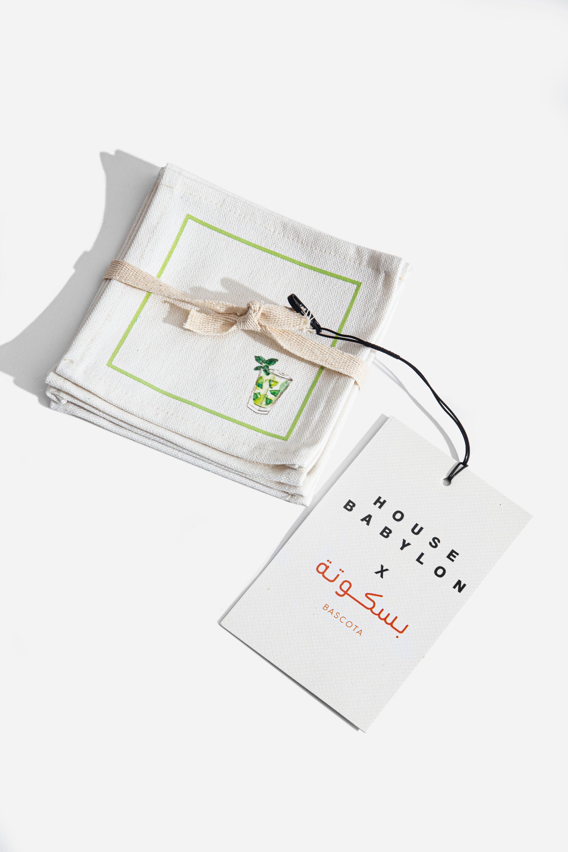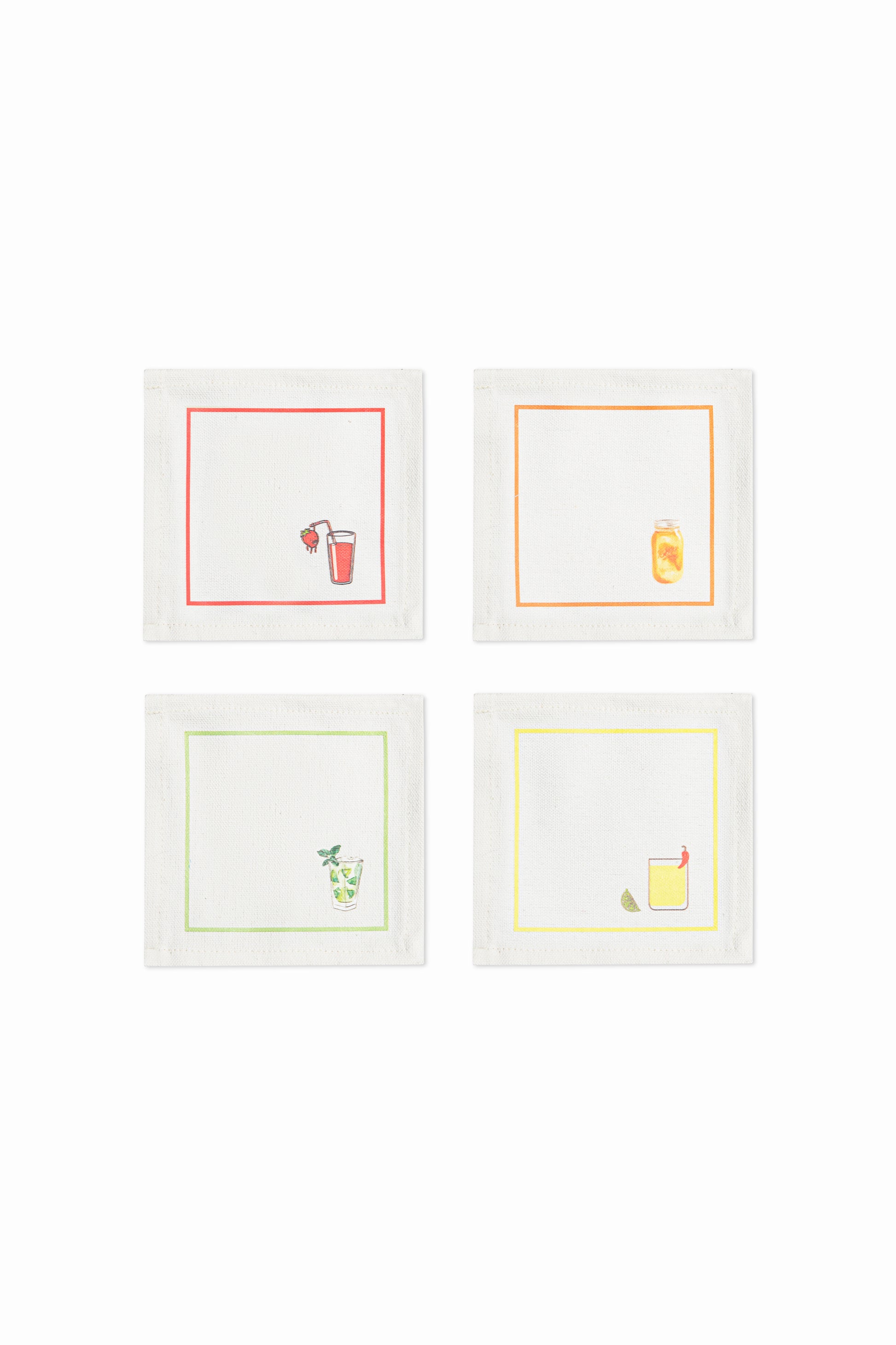 Protect your tabletops with these cotton canvas coasters, featuring a printed design. Sold as a set of 4.