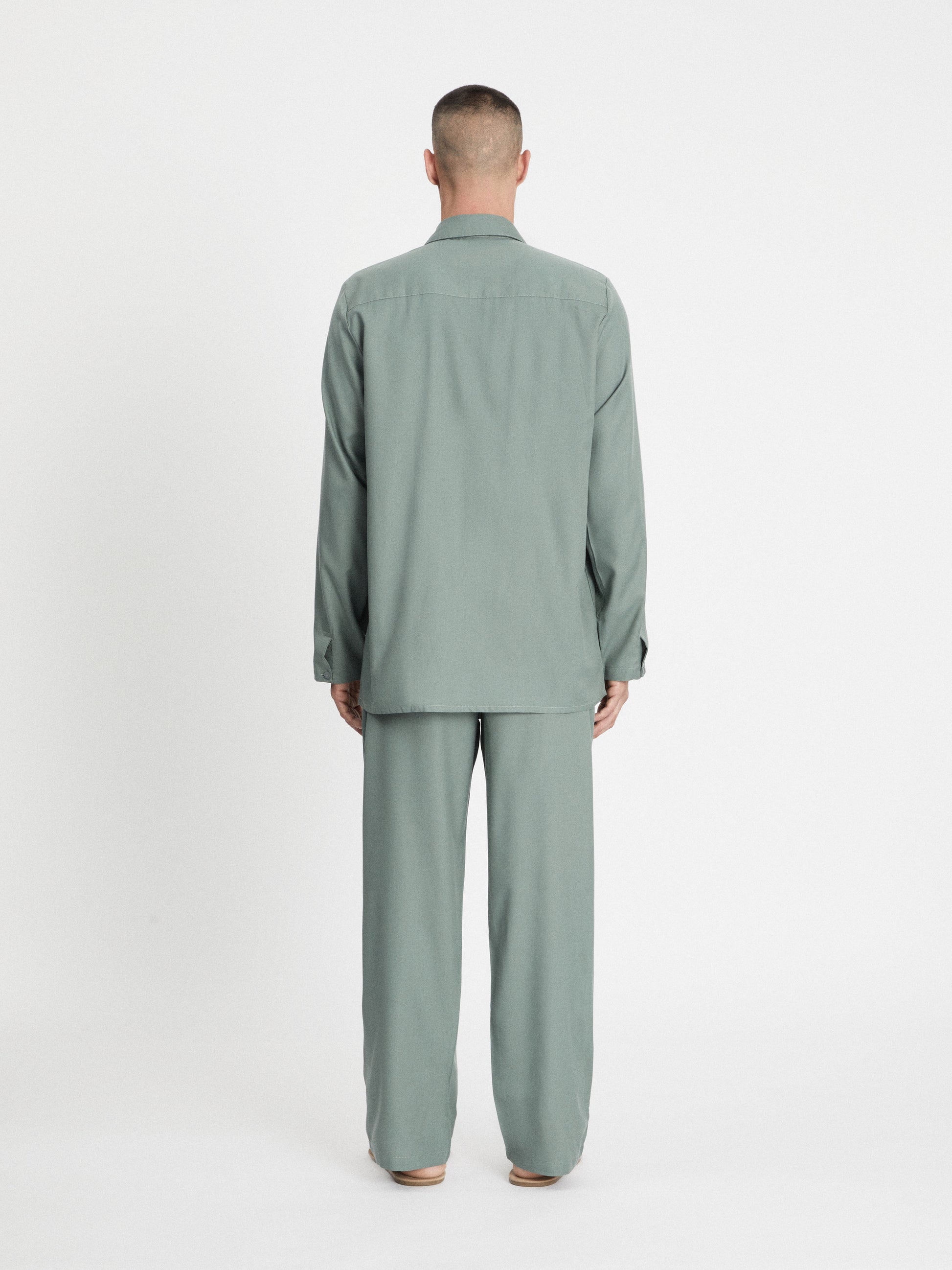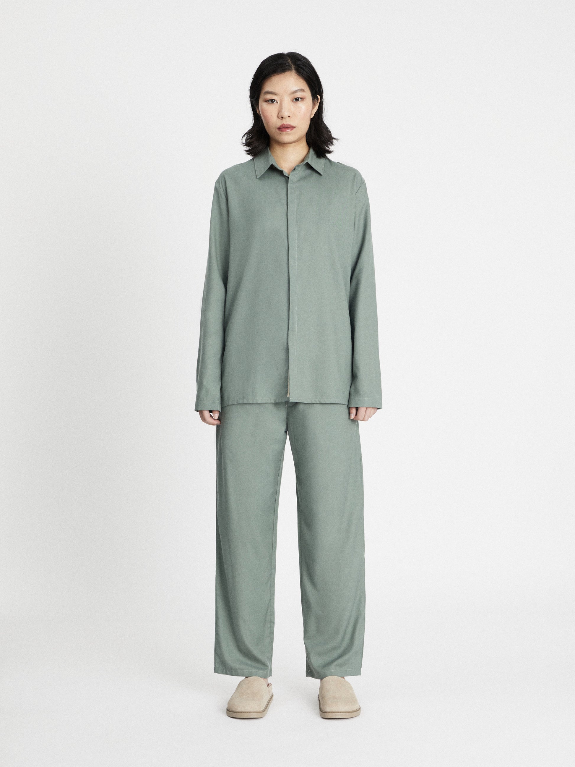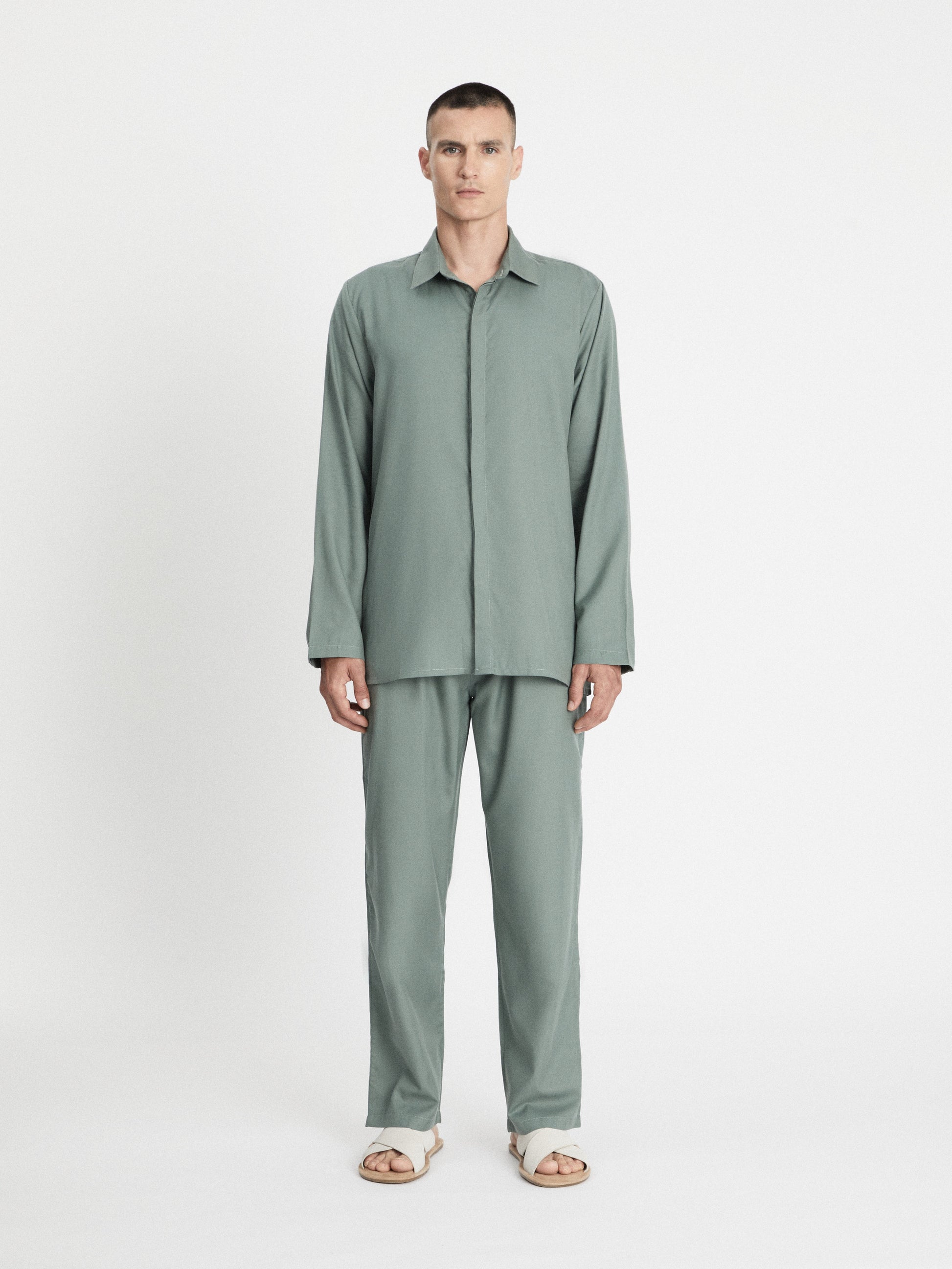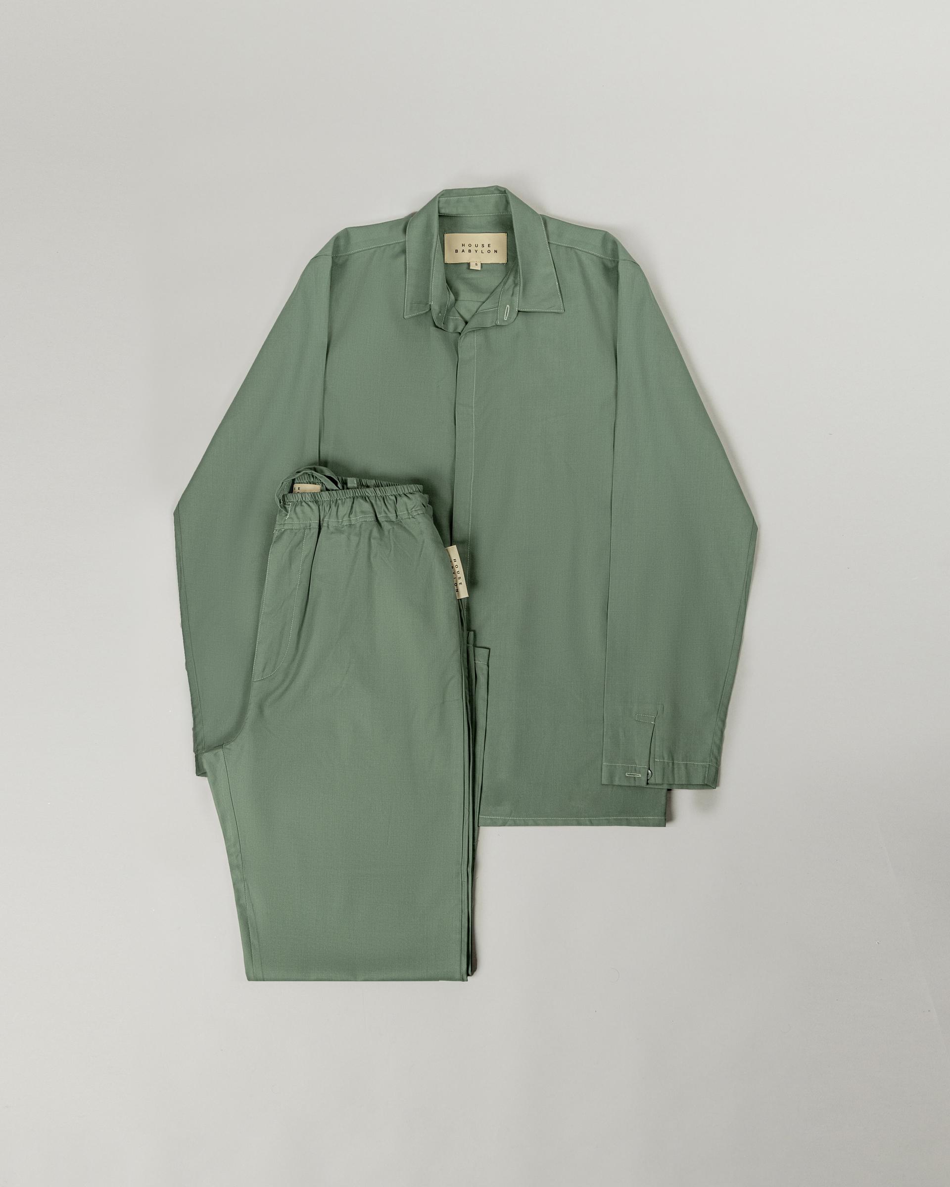 House Babylon’s tencel sets are crafted from a naturally breathable cotton tencel fabric, providing a softness akin to a silk-like feel. This airy unisex set promises to be a wardrobe staple throughout the warmer months and offers a relaxed tapered fit featuring a spread collar, two side pockets, and an elastic waistband with a drawstring. Made in Egypt.