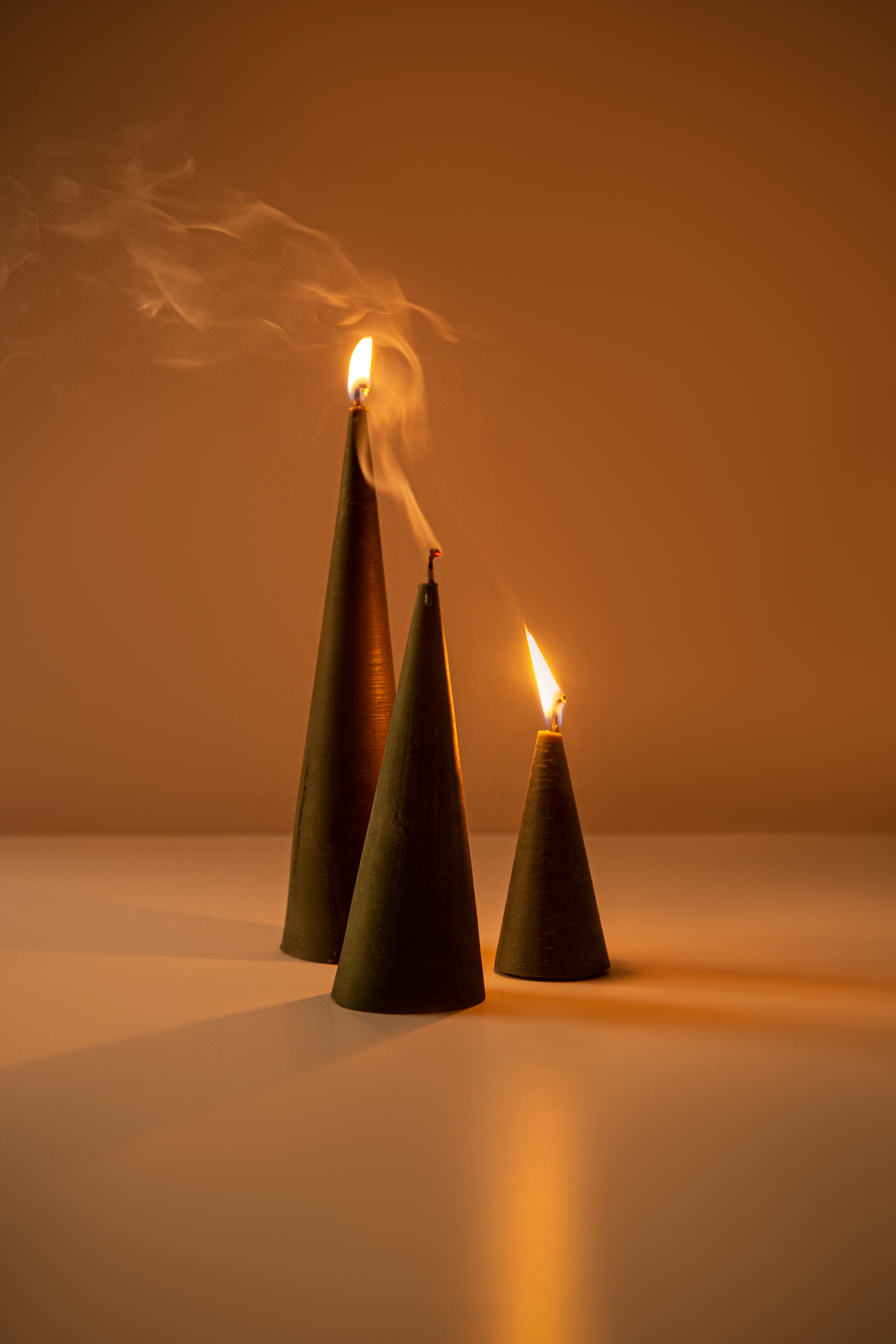 Handmade in our Cairo studio, the Trio Cone Candles are as functional as they are sculptural. To ensure the best burn, keep the wick trimmed, space candles at least 10 cm apart, and avoid placing them in direct sunlight or near drafts.