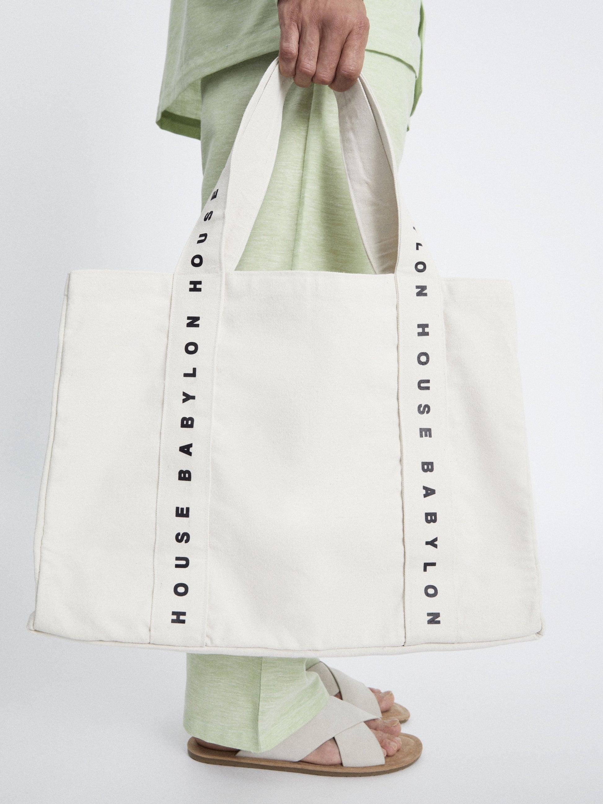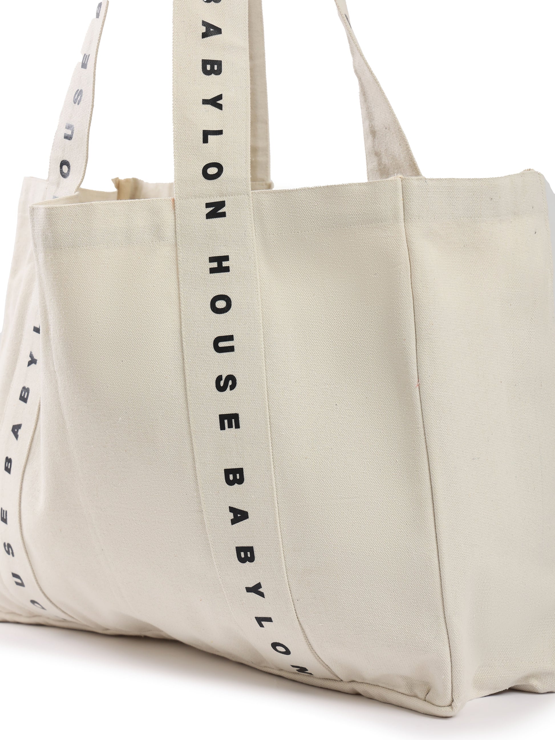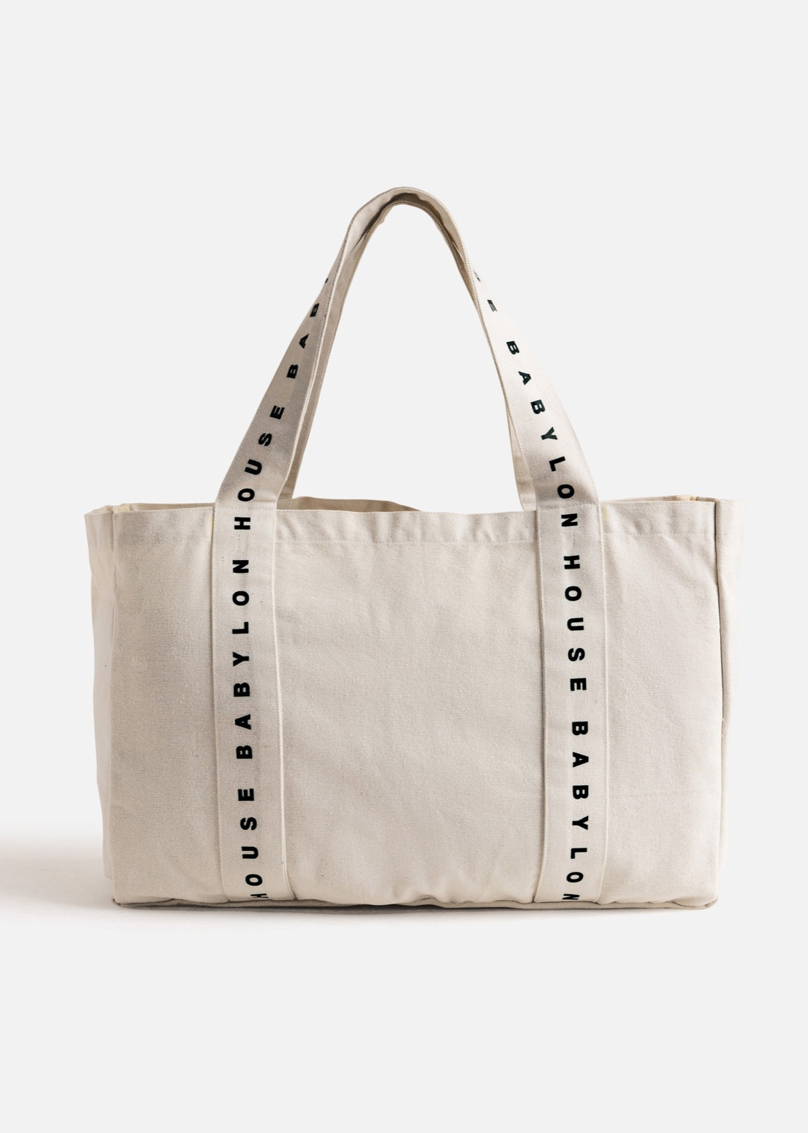 House Babylon' tote bags are crafted from a thick and durable cotton canvas. It's fitted with top handles and has an internal slip-zipped pocket to keep small items accessible. Perfect for everyday use to hold anything from your trainers to your gym wear. Easily folds flat, great for traveling with. Made in Egypt.