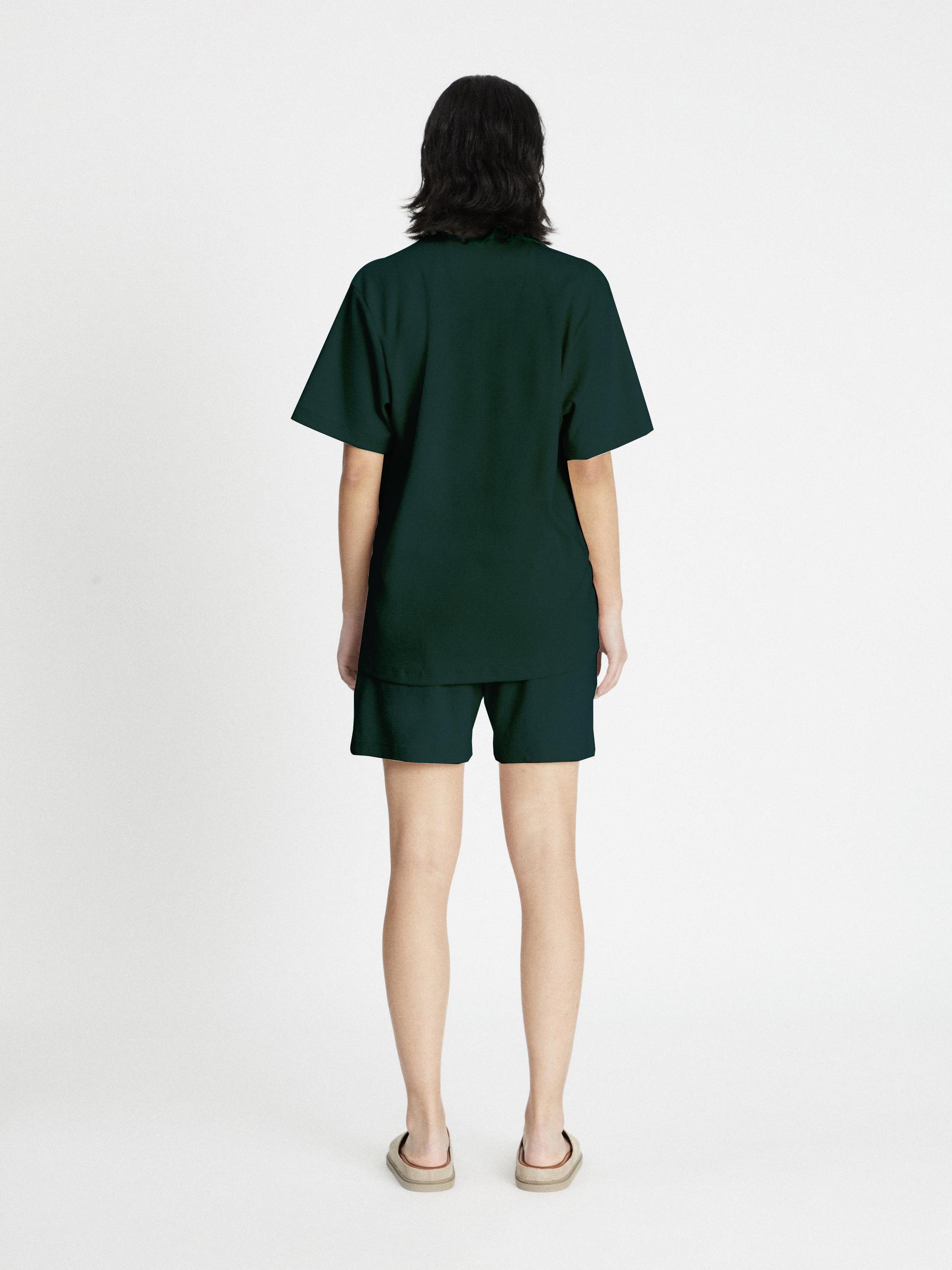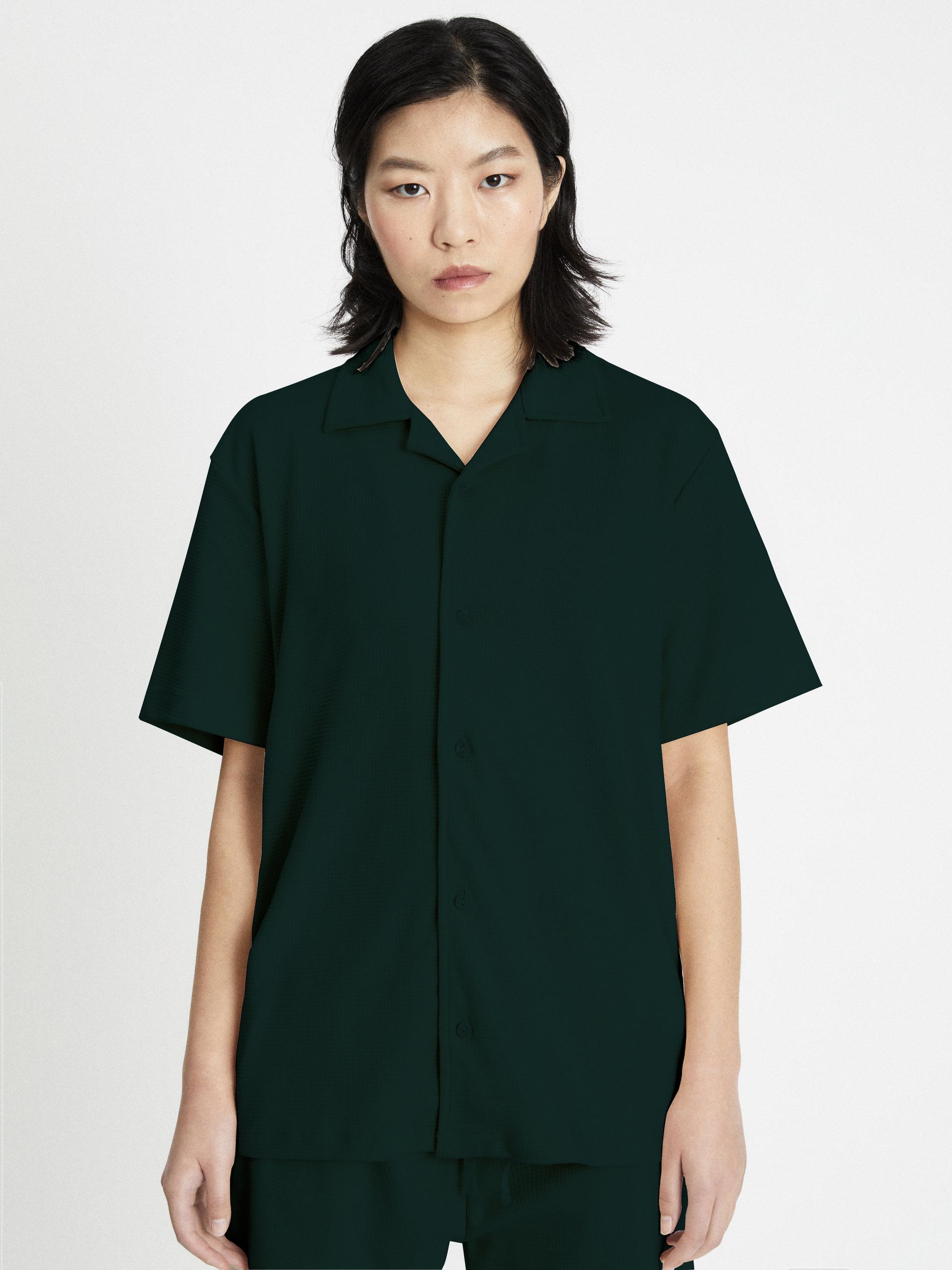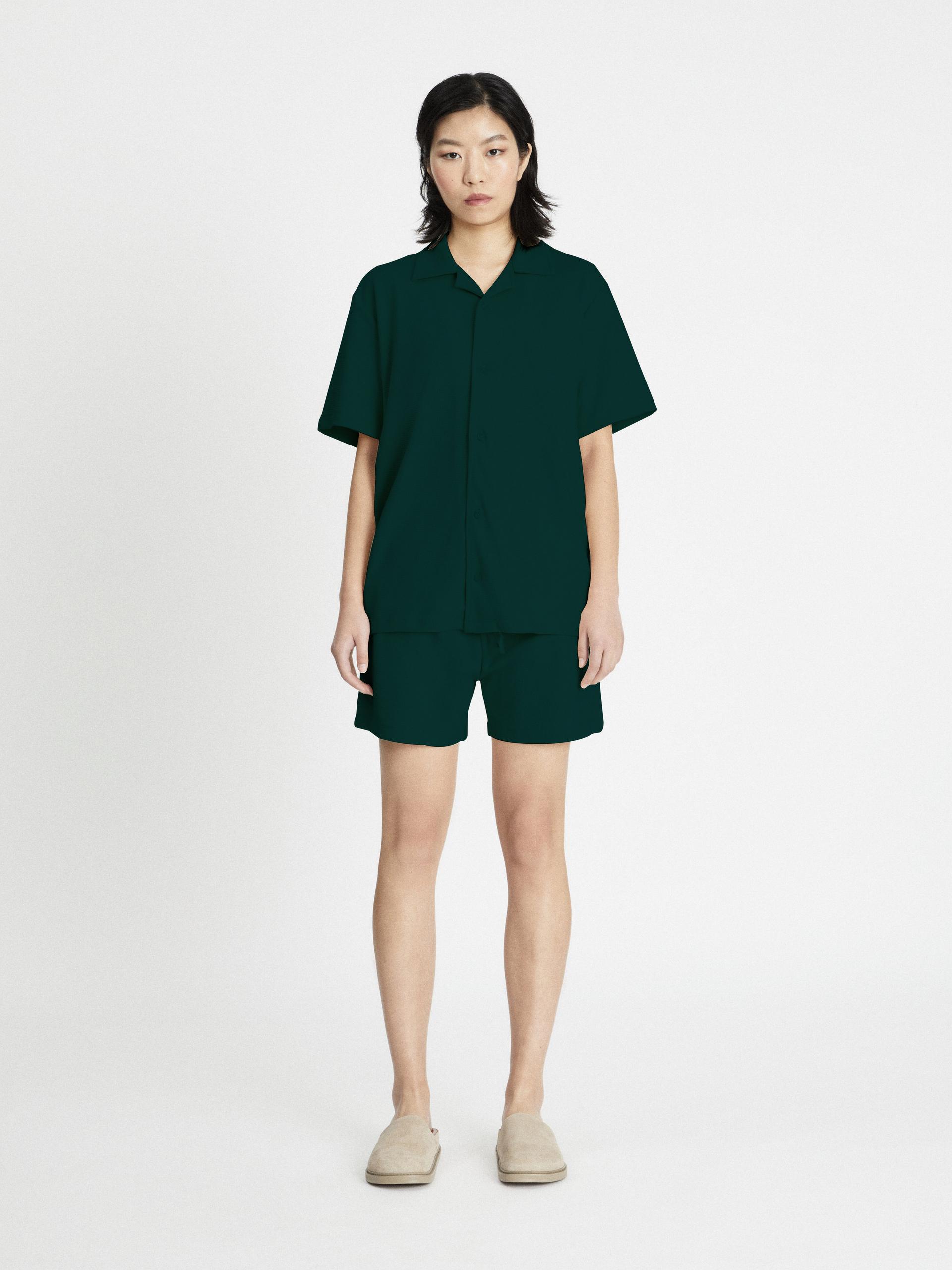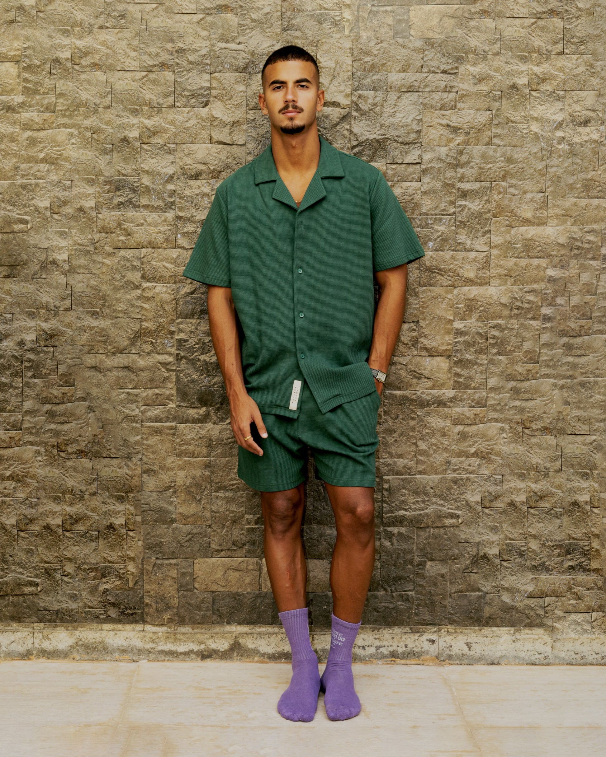 House Babylon’s waffle sets are crafted from a naturally breathable cotton fabric. This unisex set promises to be a wardrobe staple throughout the warmer months and offers a relaxed tapered fit featuring a camp collar, two side pockets, and an elastic waistband with a drawstring. Made in Egypt.