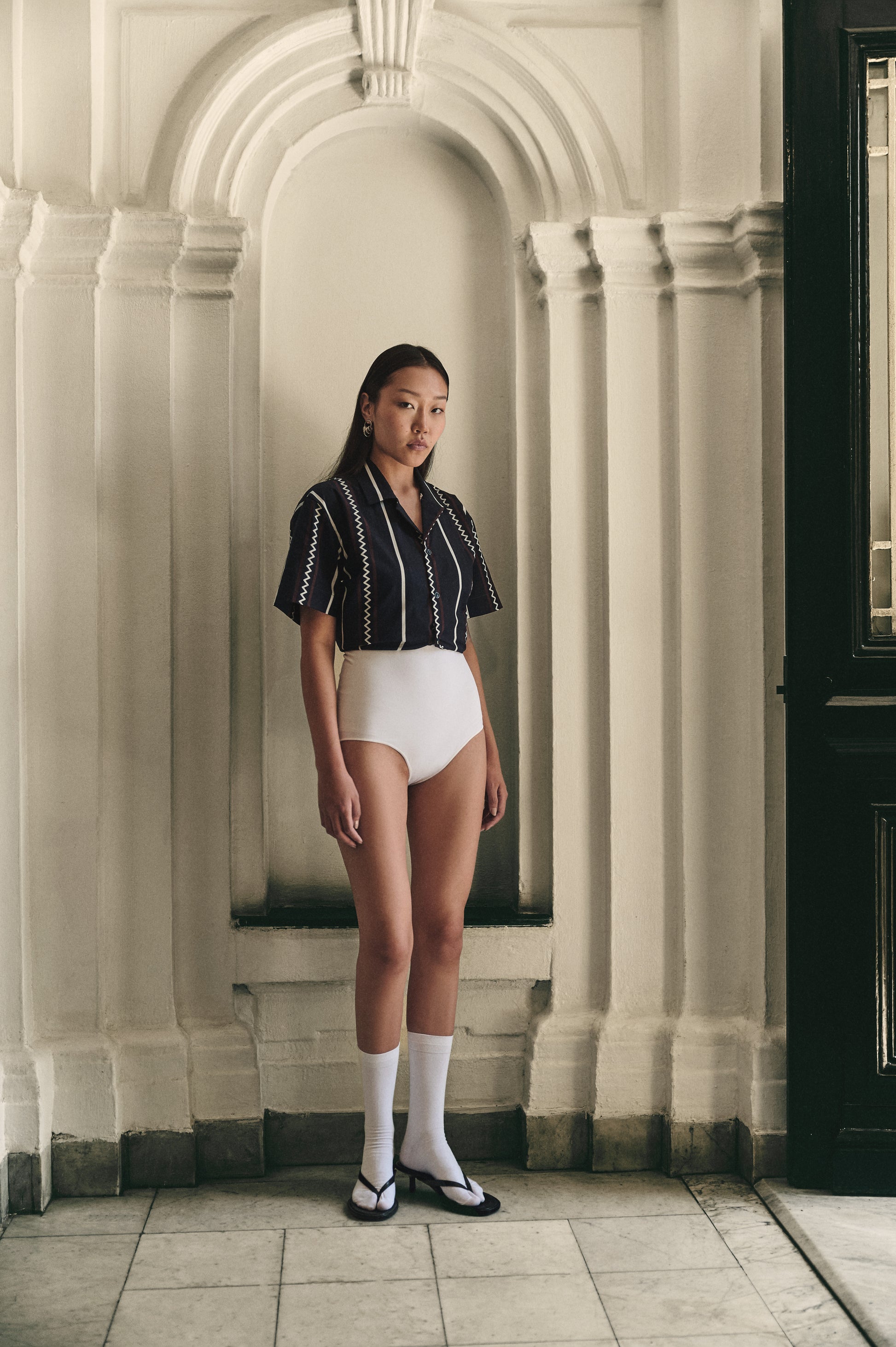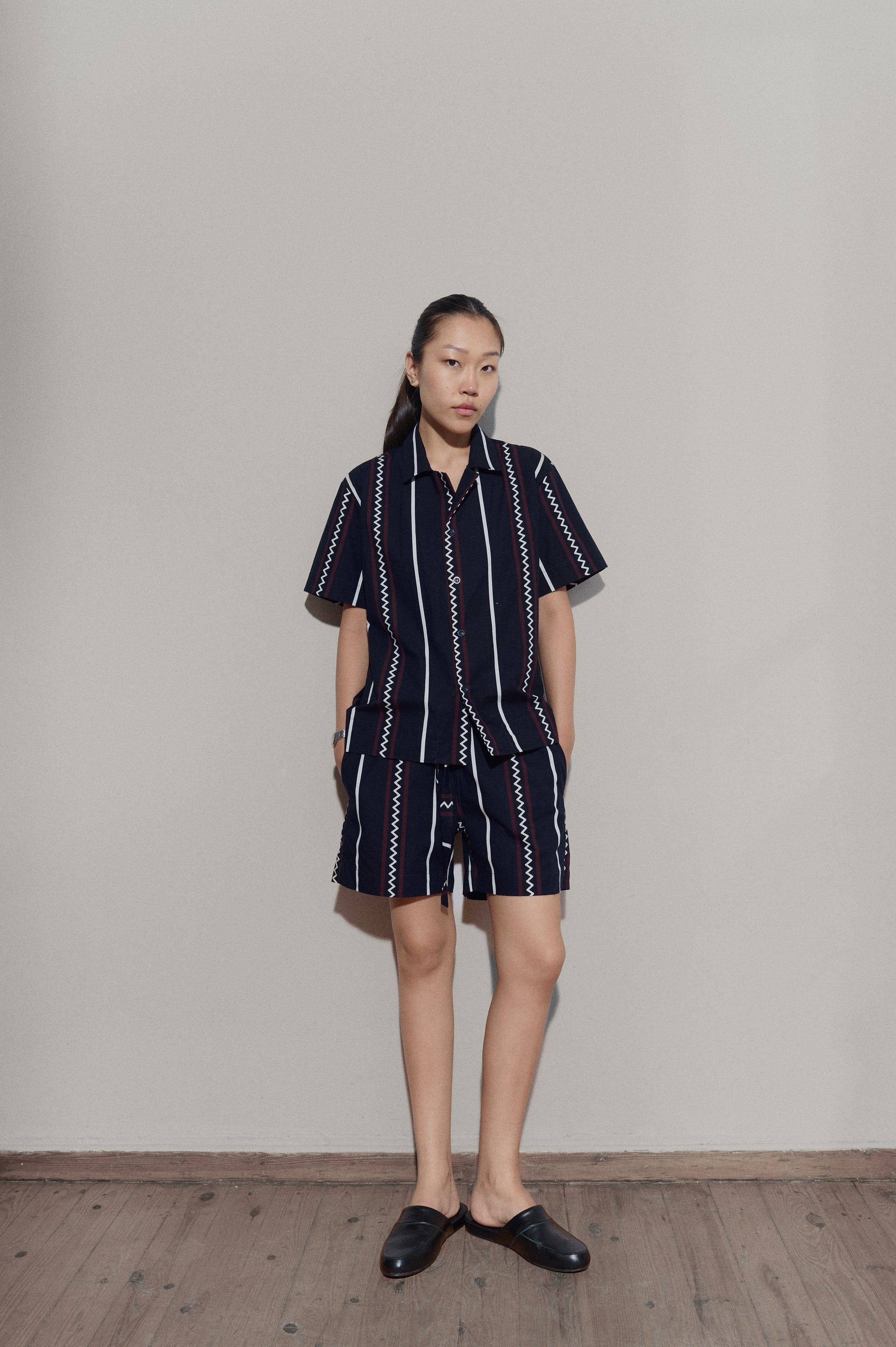 A summer uniform reimagined in breathable Egyptian cotton poplin. This set includes a short-sleeved shirt and tailored shorts, both cut for a relaxed fit that moves easily with you. The shirt features a soft spread collar, button closure, and a single chest pocket for subtle utility. The shorts are designed with short legs, an elastic waistband with tonal drawstring, discreet side pockets, and a single back pocket. Lightweight, easy to wear, and endlessly versatile, made for warm days at home or in the city. Made in Egypt.
